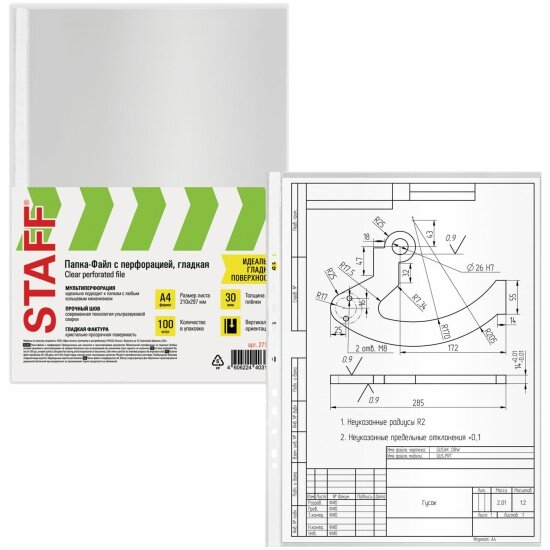 Папки-файлы Staff перфорированные А4 Clear, комплект 100 шт, гладкие, 30 мкм, 271825 интересное: