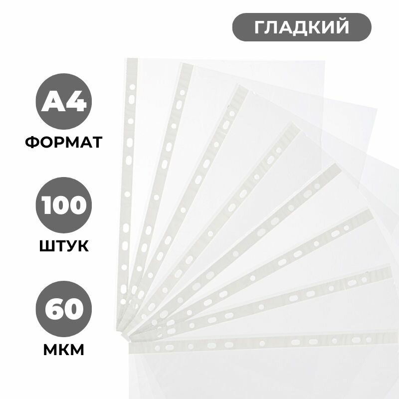 Файлы-вкладыши А4, гладкие, Attache, с перфорацией, 60 мкм, 100 шт. интересное: