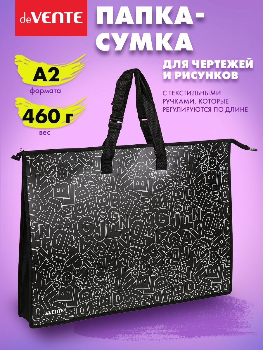 Папка А2 , 650х470х100 мм, deVENTE "Uno", с ручками, пластиковая, молния сверху, внутренний карман