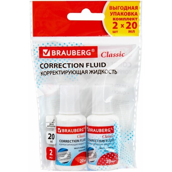 Корректирующая жидкость 20 мл выгодная упаковка, комплект 2 штуки в пакете, BRAUBERG CLASSIC, 271919