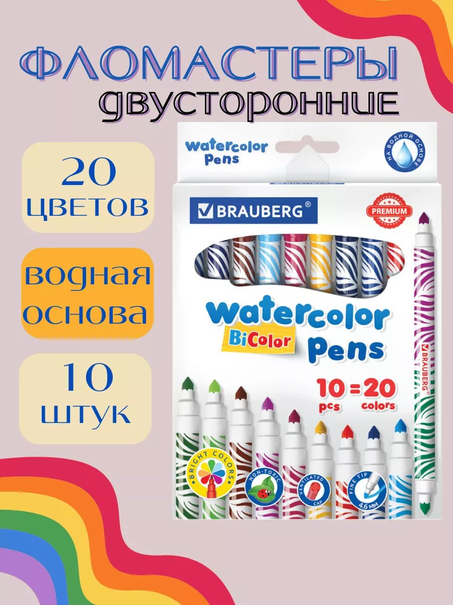 Купить Фломастеры двусторонние 20 цветов