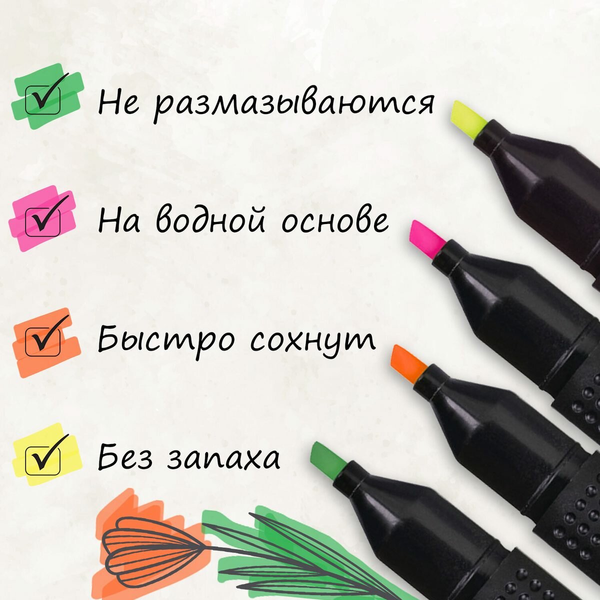 Текстовыделители набор 6 цветов, маркеры для рисования, скетчинга и выделения текста неоновые, линия 1-4 мм, Staff College Stick Neon, 152534