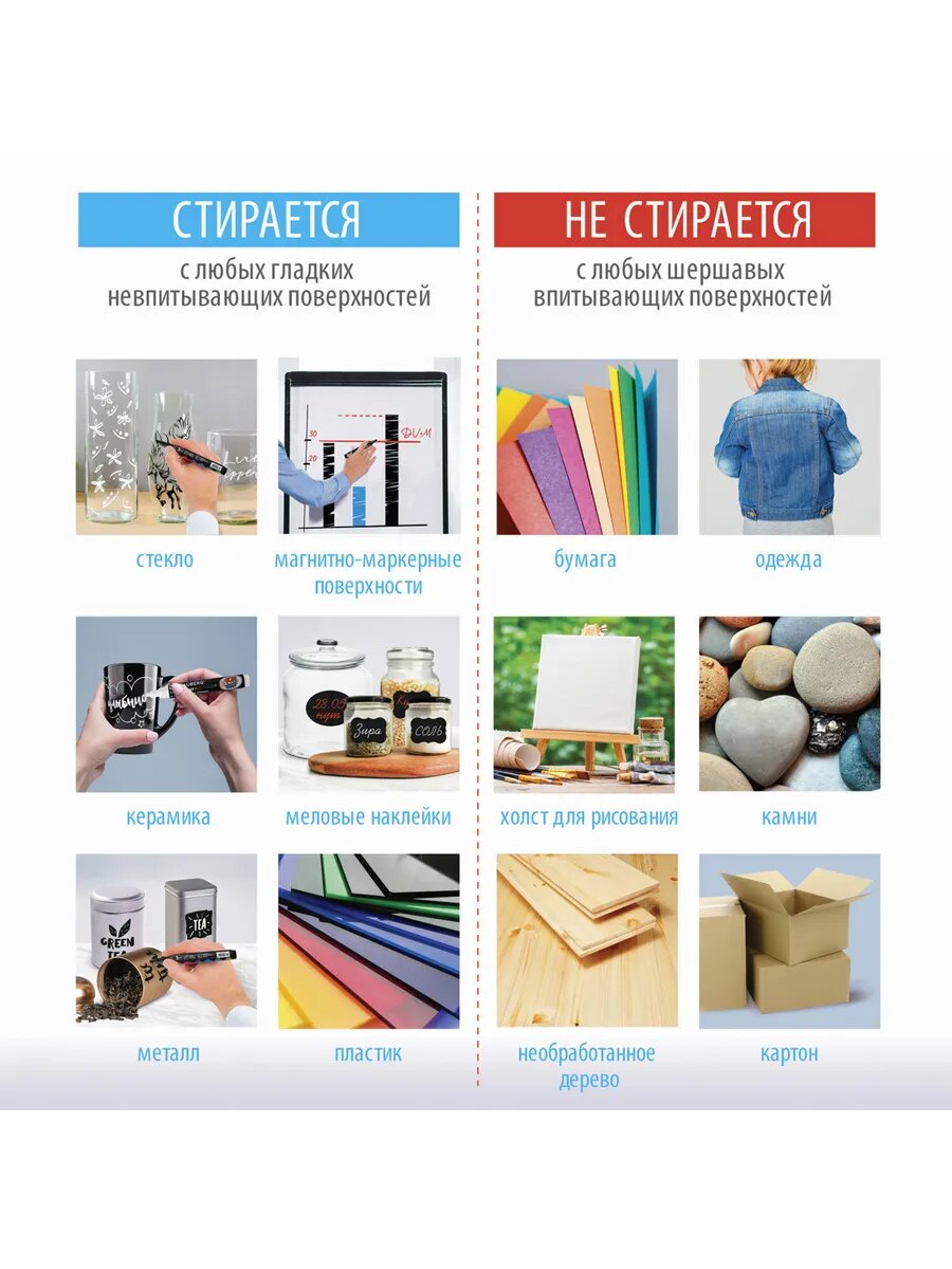 | Тип маркера | для досок и флипчартов / для меловых досок / для скетчинга / текстовыделитель / универсальный |
