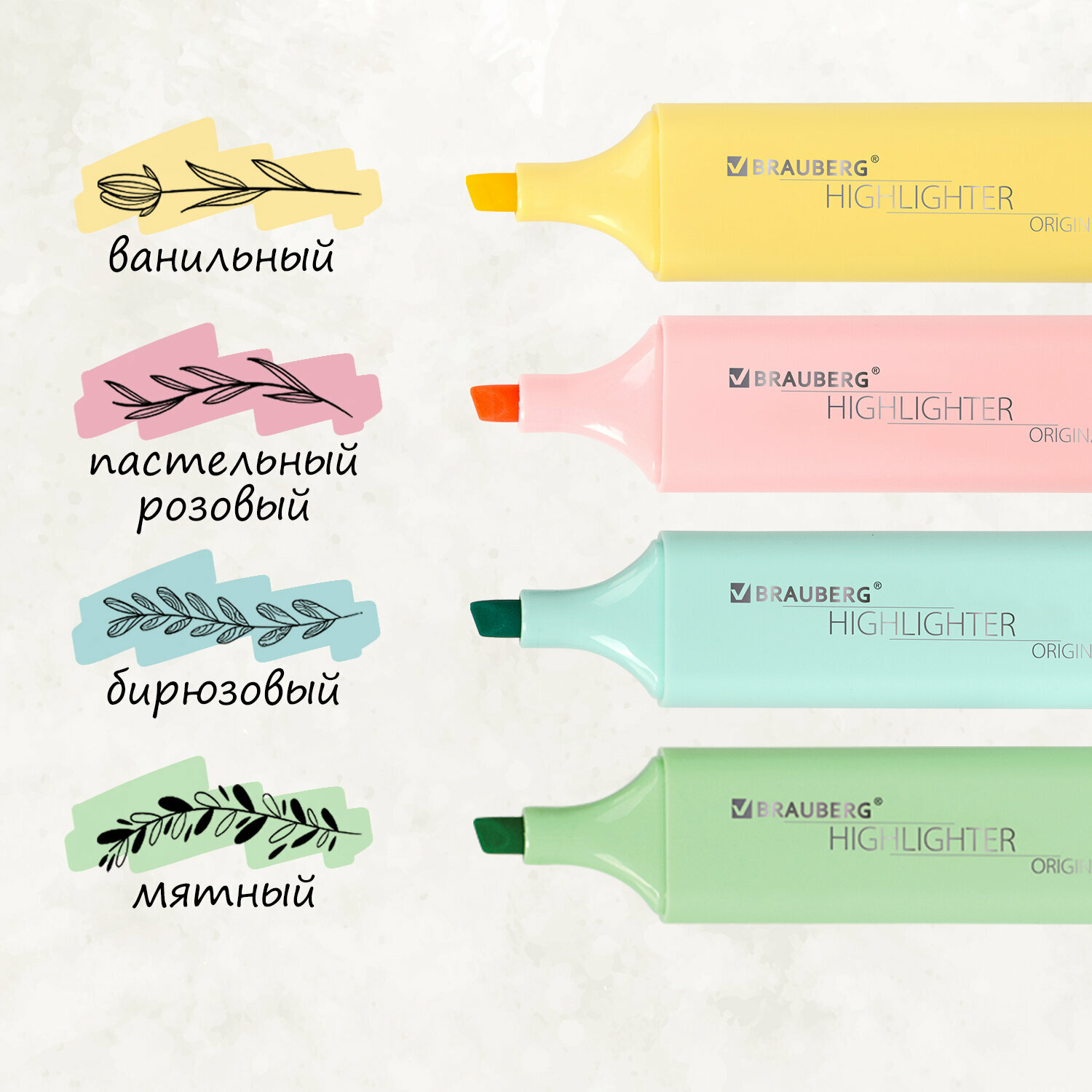 Ниже Вы можете прочитать отзывы на Маркер-текстовыделитель (для выделения текста) Brauberg "Original Pastel", набор из 4 штук, ассорти цветов, линия 1-5 мм, 151697, ознакомится с подробными характеристиками, посмотреть интересные обзоры и фотографии на Маркер-текстовыделитель (для выделения текста) Brauberg "Original Pastel", набор из 4 штук, ассорти цветов, линия 1-5 мм, 151697.