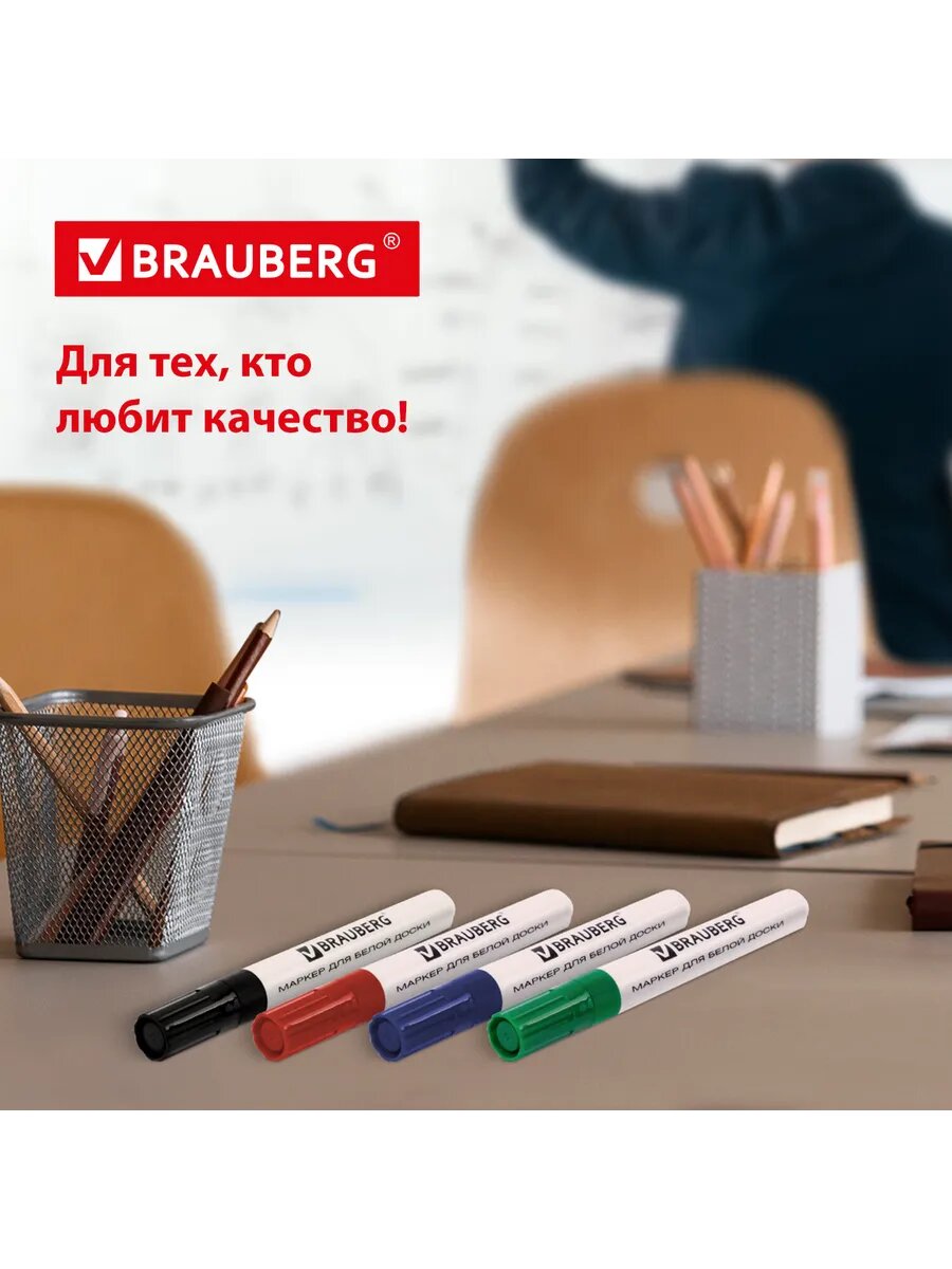 Маркеры/фломастеры для магнитной доски стирающиеся Brauberg, набор из 4 шт, 5 мм, классические, ассорти, круглый наконечник, 150417