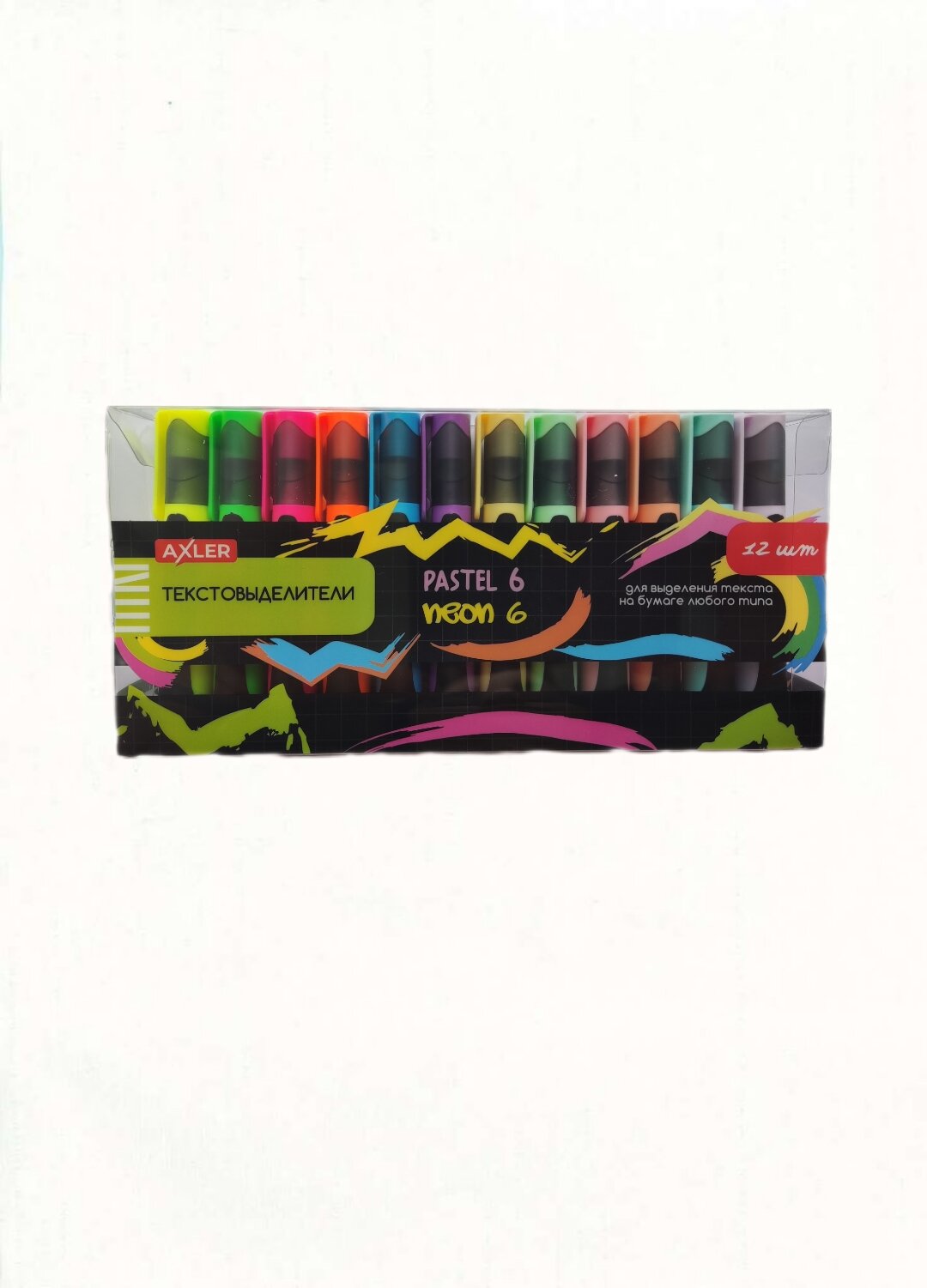 Купить Текстовыделители AXLER, пастельные и неоновые маркеры выделители для текста, набор 12 шт на подставке