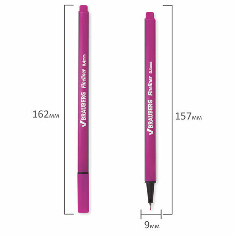 Ручка капиллярная (линер) BRAUBERG "Aero", розовая, трехгранная, металлический наконечник, линия письма 0,4 мм, 142256 (цена за 1 ед.товара)