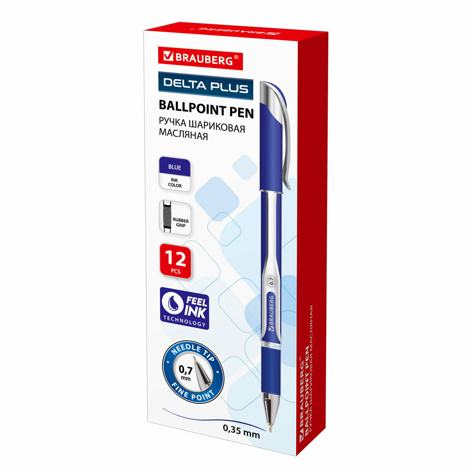 Ручка шариковая масляная с грипом BRAUBERG Delta Plus, комплект 12 штук, синяя, узел 0,7 мм, 880183 интересное: