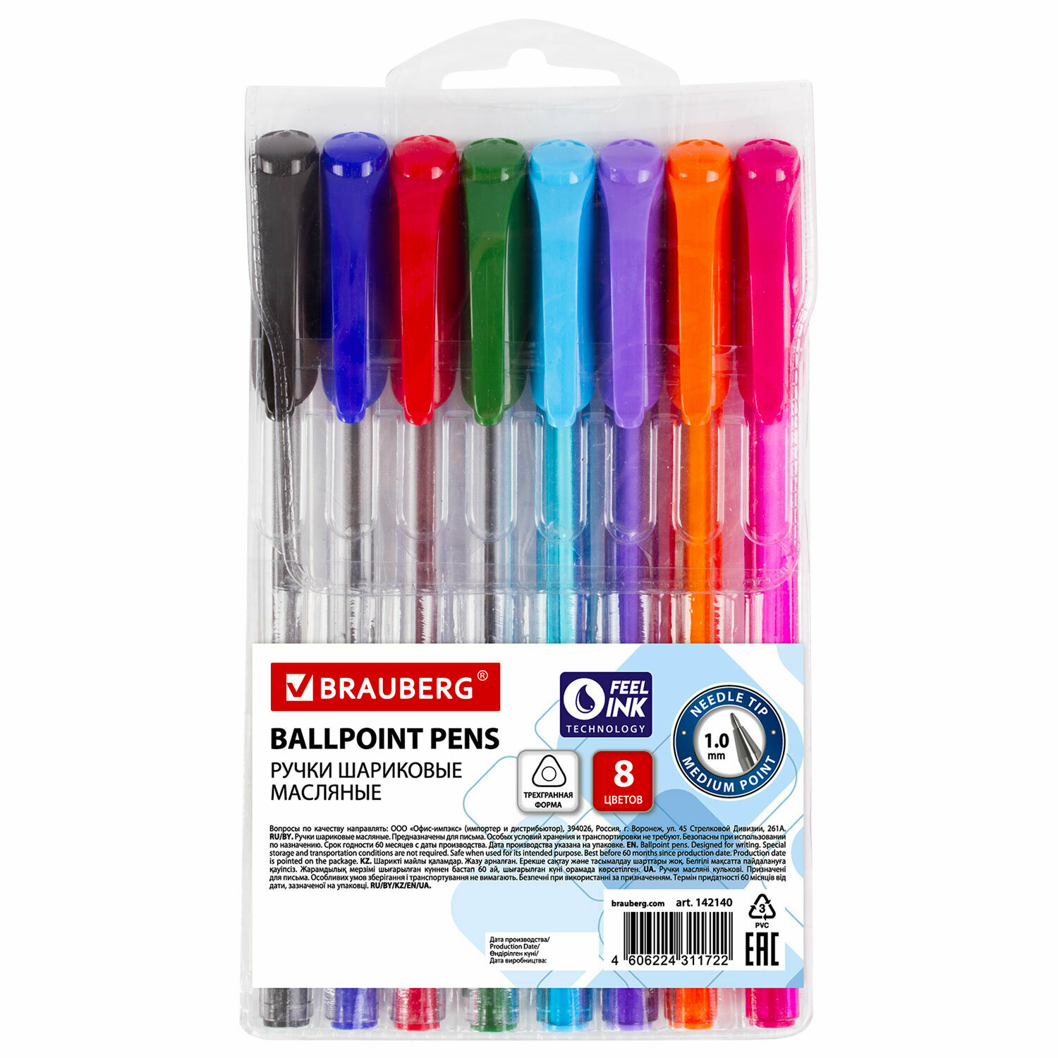 Ручки шариковые цветные масляные Brauberg "Extra Glide", 8 штук в упаковке, узел 1 мм, линия 0,5 мм, 142140 интересное:
