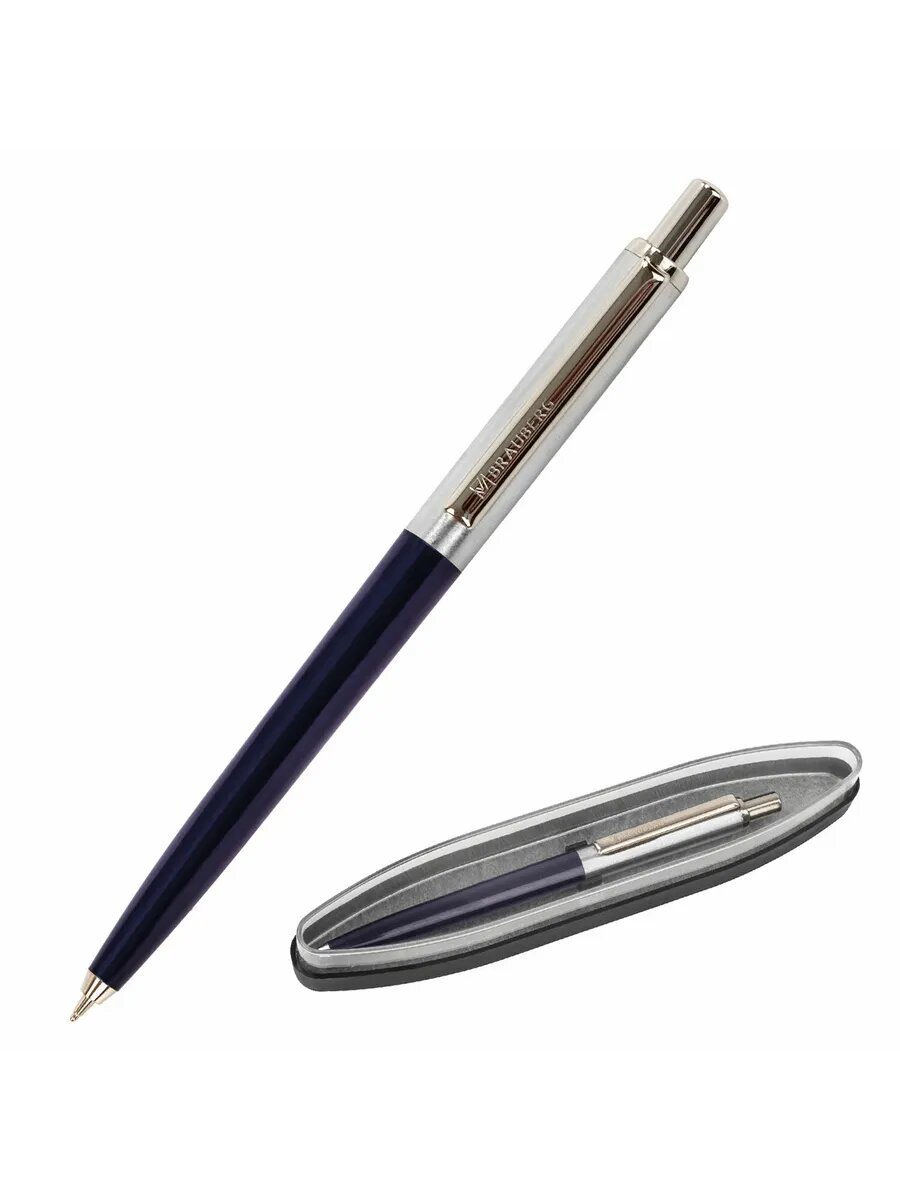 Ручка подарочная шариковая BRAUBERG "Soprano", синяя, корпус серебристый с синим, линия письма 0,5 мм, 143484