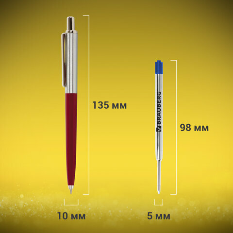Ручка бизнес-класса Brauberg шариковая Soprano, синяя, корпус серебристый с бордовым, 0,5мм
