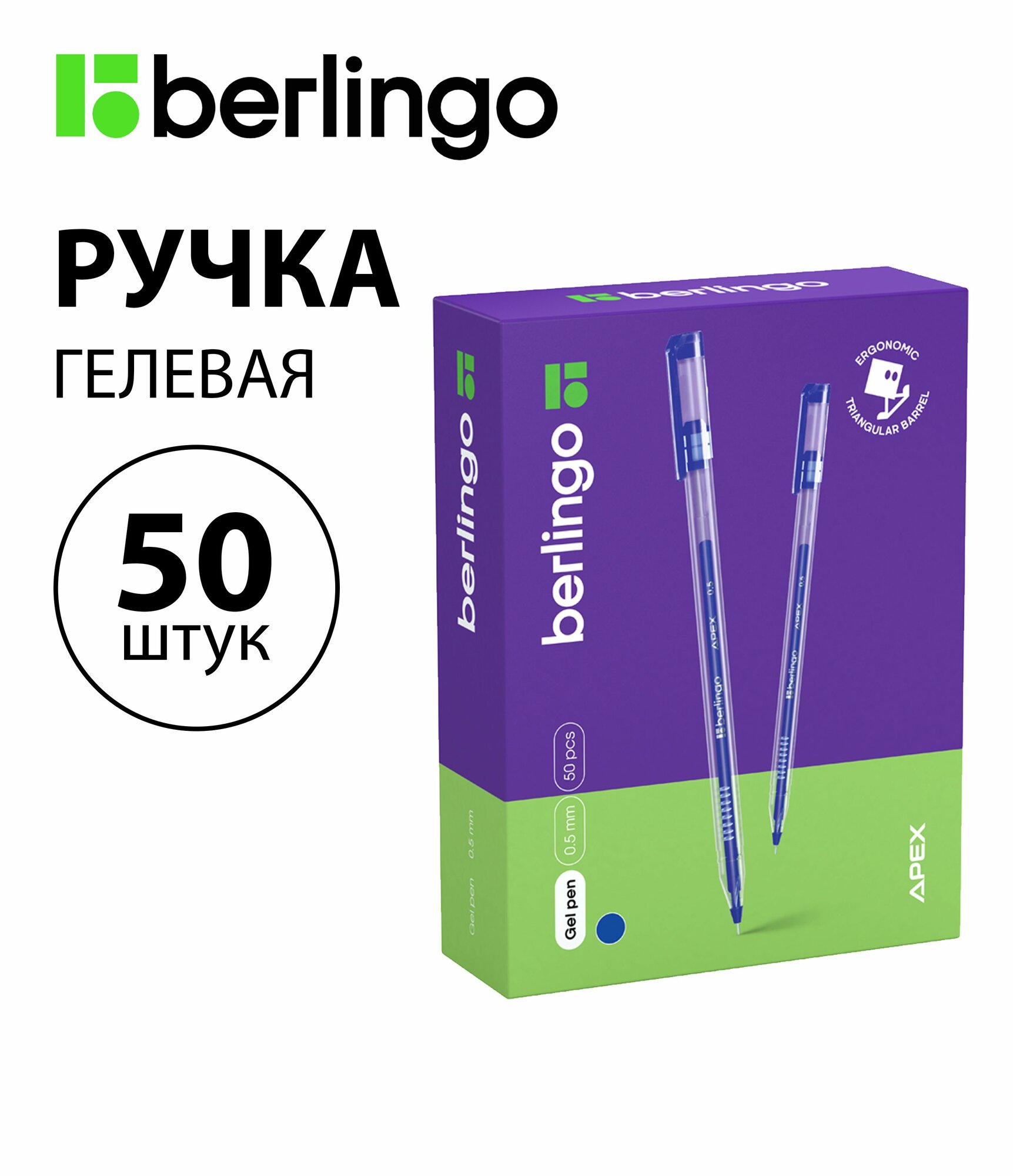 СохранитьНабор 50 шт. - Ручка гелевая Berlingo "Apex", синяя, 0,5 мм CGp_05152 интересное: