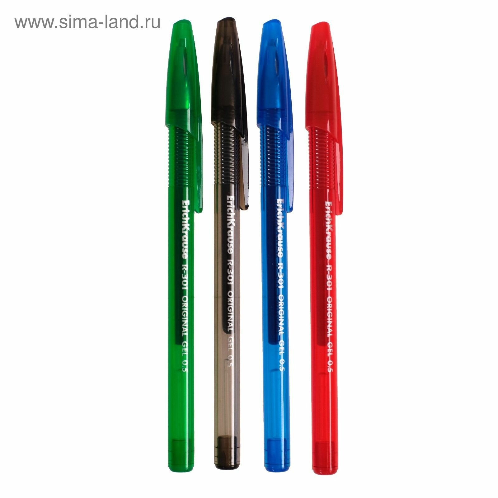 Купить Набор гелевых ручек 4цв ErichKrause® R-301 Original Gel Stick 0.5, цвет чернил: синий, черный, красный, зеленый 45157