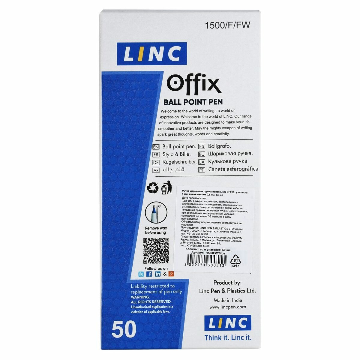 Купить Ручка шариковая Linc Offix (1мм, синяя), 50шт.