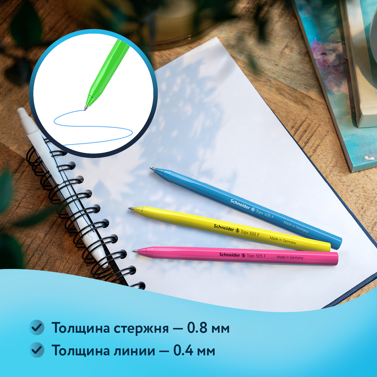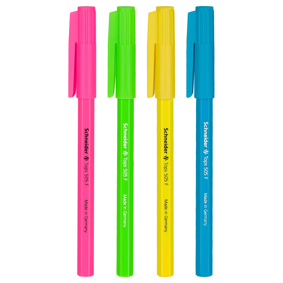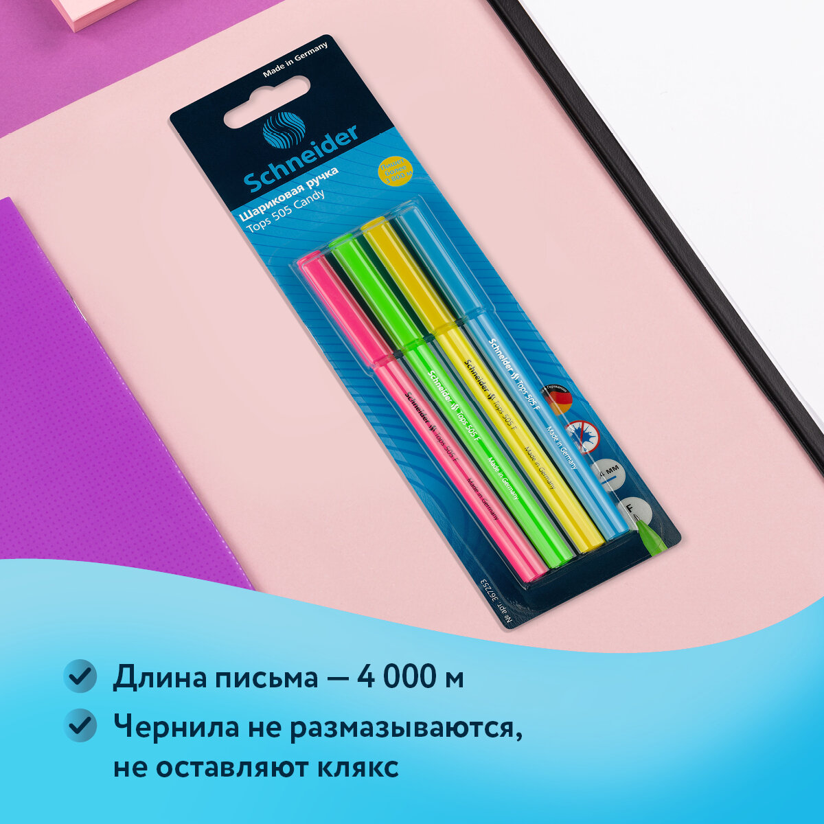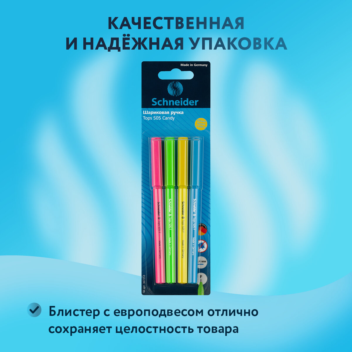Набор шариковых ручек Schneider "Tops 505 F Candy" 4шт, синие, 0,8мм, корпус неон ассорти, блистер интересное: