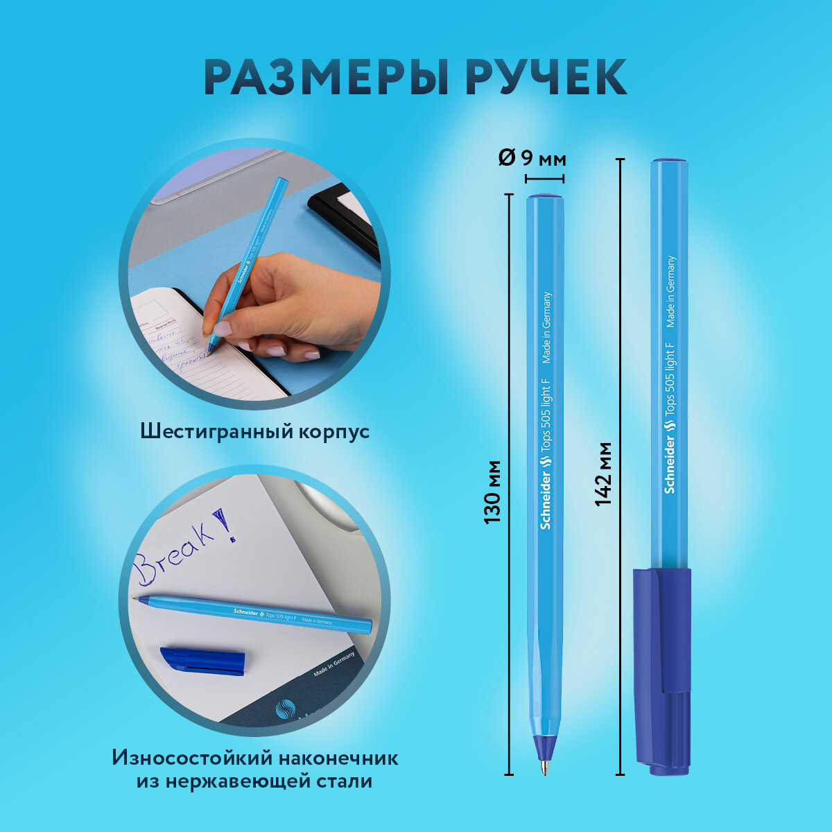 Ручка шариковая синяя Schneider "Tops 505 F Light " линия 0,4 мм, шестигранный корпус голубого цвета, набор 6 штук, канцелярия для школы и офиса интересное: