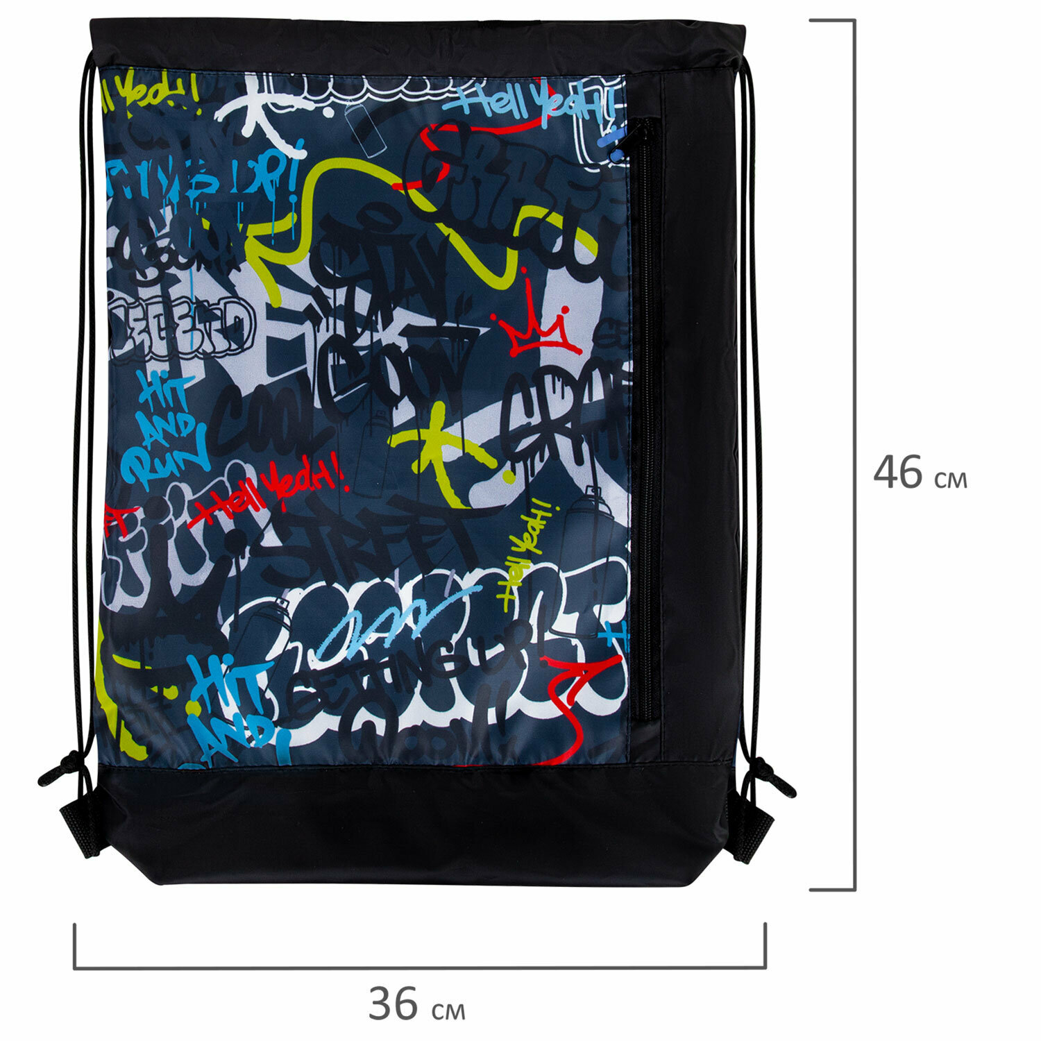 Мешок для обуви для мальчика, сумка для сменки в школу, чехол детский плотный с ручками, боковым карманом на молнии 46х36см, Юнландия Graffiti, 272408