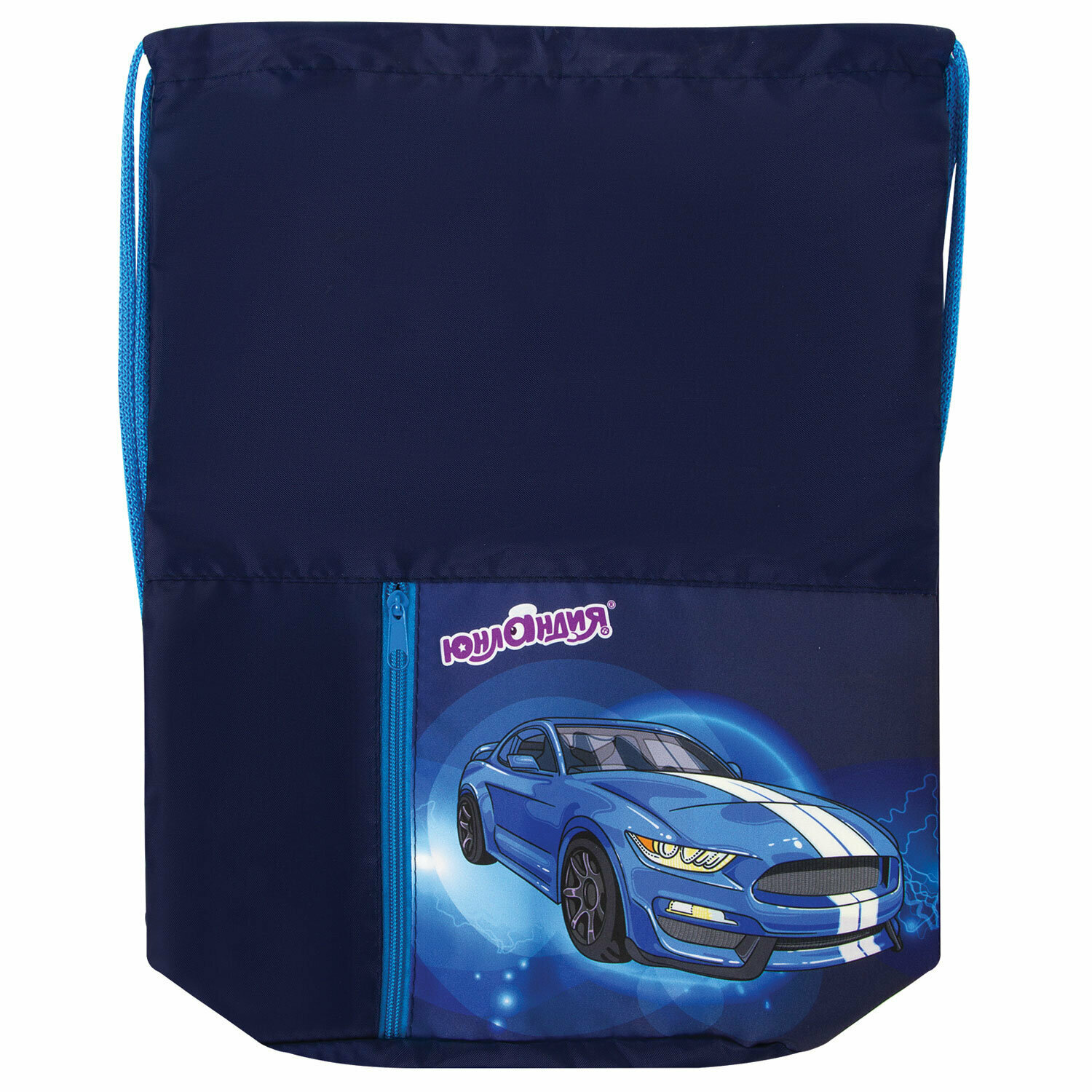 Мешок для обуви юнландия, карман на молнии, 33х42 см, "Blue Car", 270407
