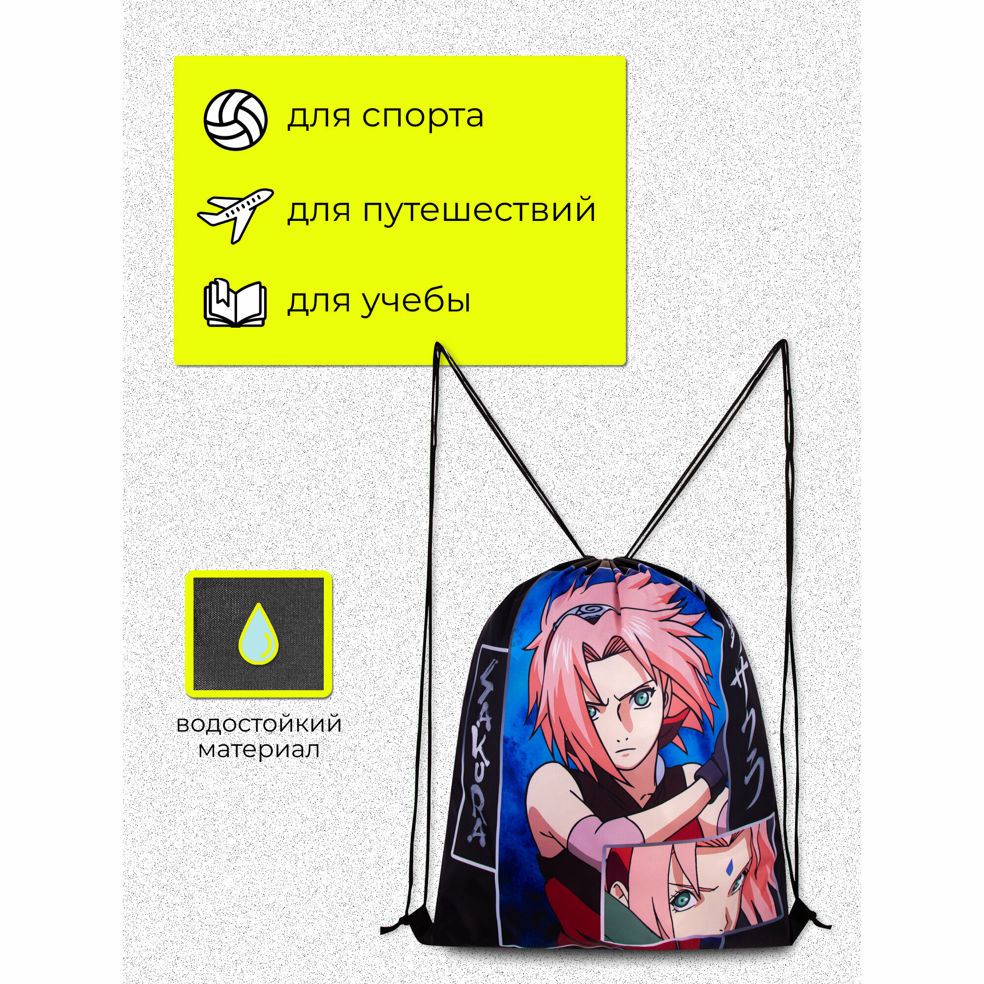 Мешок для обуви NTJB-UT1-883W Naruto, увеличенного размера 48 х 38 х 1 см, для мальчиков.