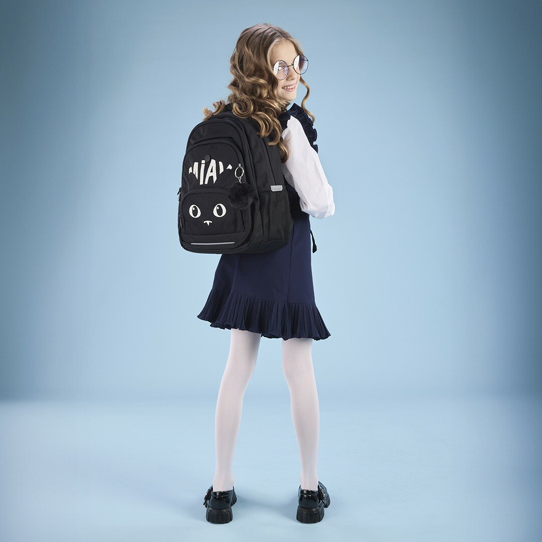 Рюкзак школьный, 39 х 30 х 20 см, Grizzly, эргономичная спинка, + брелок, чёрный