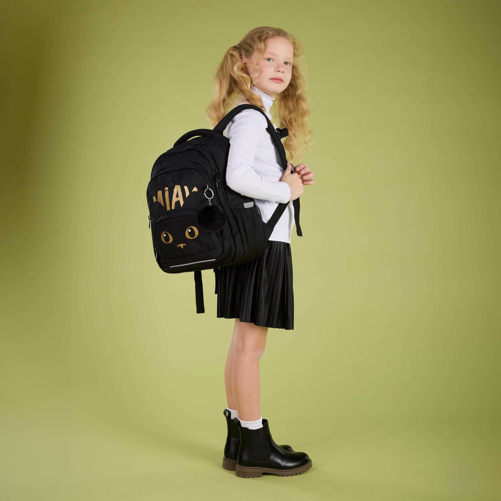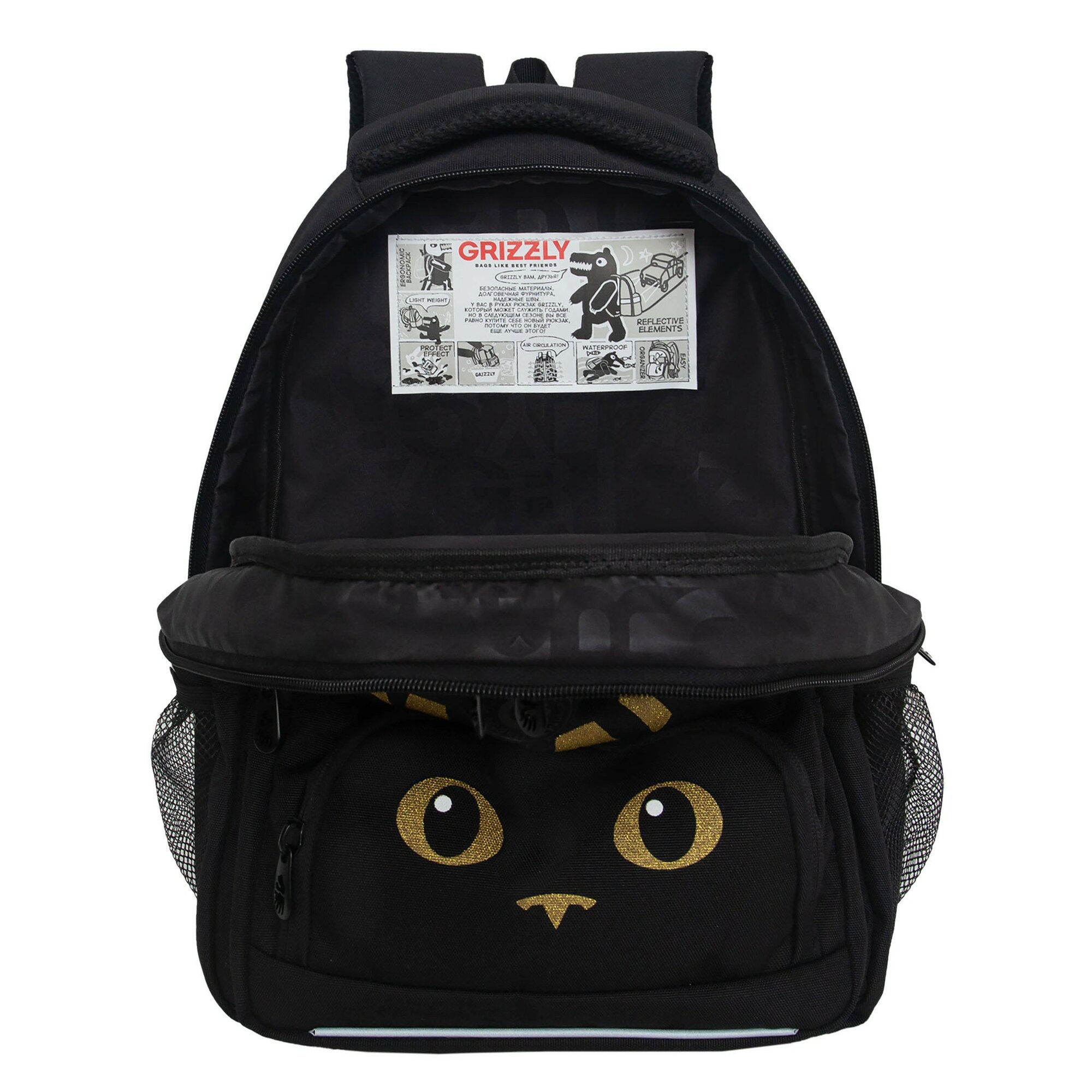 Рюкзак школьный, 39 х 30 х 20 см, Grizzly, эргономичная спинка, + брелок, чёрный