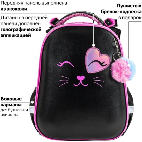 Ранец BRAUBERG SHINY, 2 отделения, с брелком, "Smiling cat", 38х28х14 см, 272040, 272040