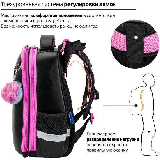 Ранец Brauberg 272040 SHINY 2 отделения с брелком Smiling cat 38х28х14 см интересное: