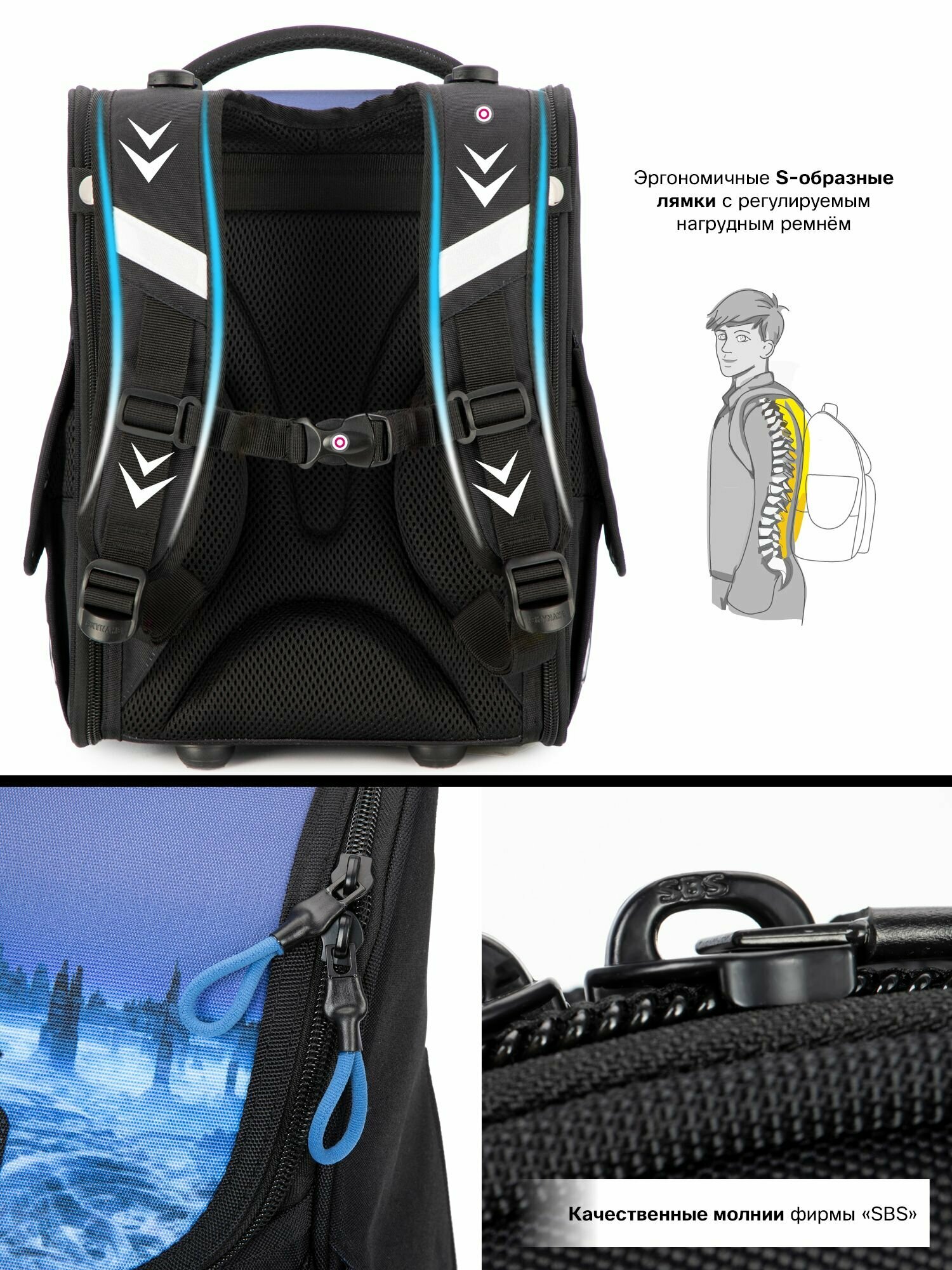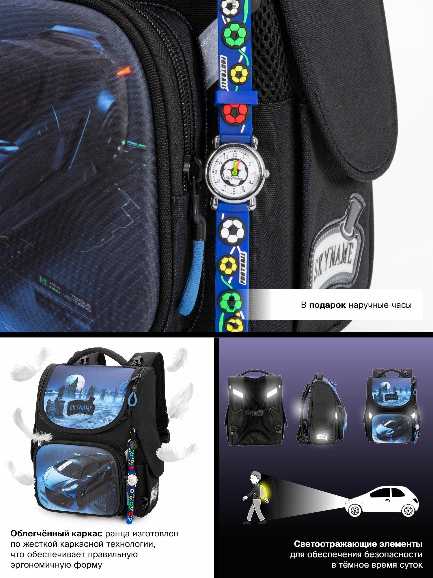 Купить Ранец школьный для мальчика 15 л для начальной школы А4 с анатомической спинкой SkyName (СкайНейм) + часы + мешок