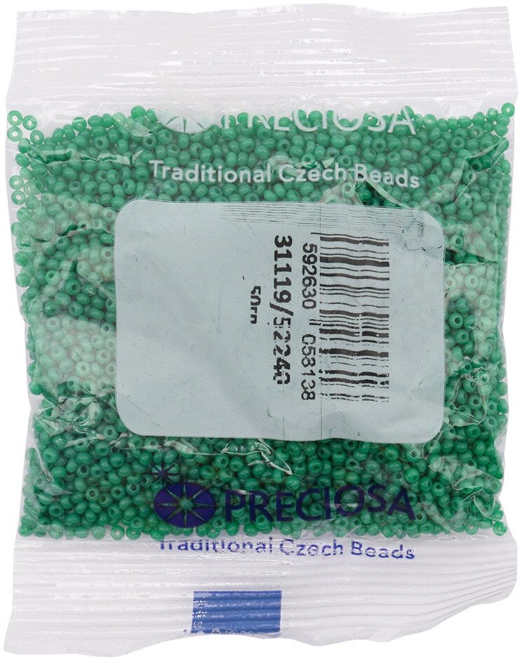 Бисер чешский PRECIOSA круглый 10/0 53250 зеленый непрозрачный, 1 сорт, 50г