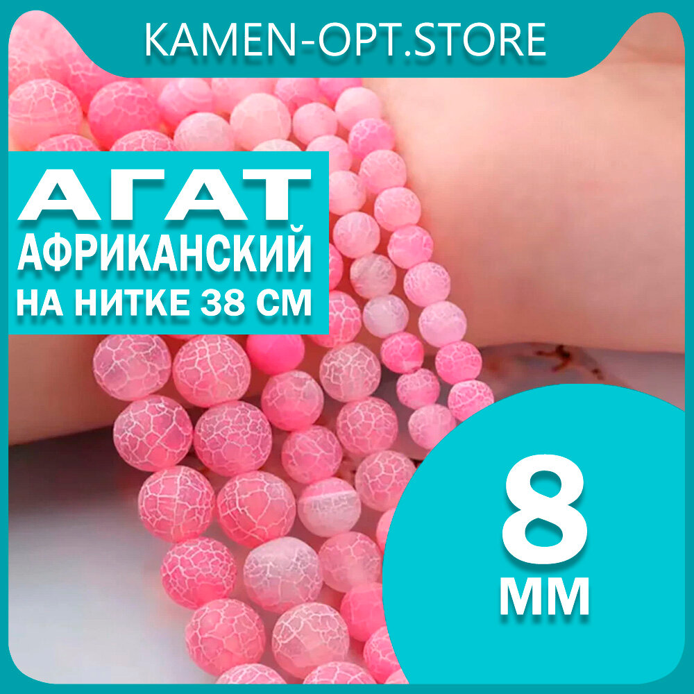 Купить KamenOpt / Агат африканский, бусины 8 мм, на нитке 38 см, цвет: Розовый