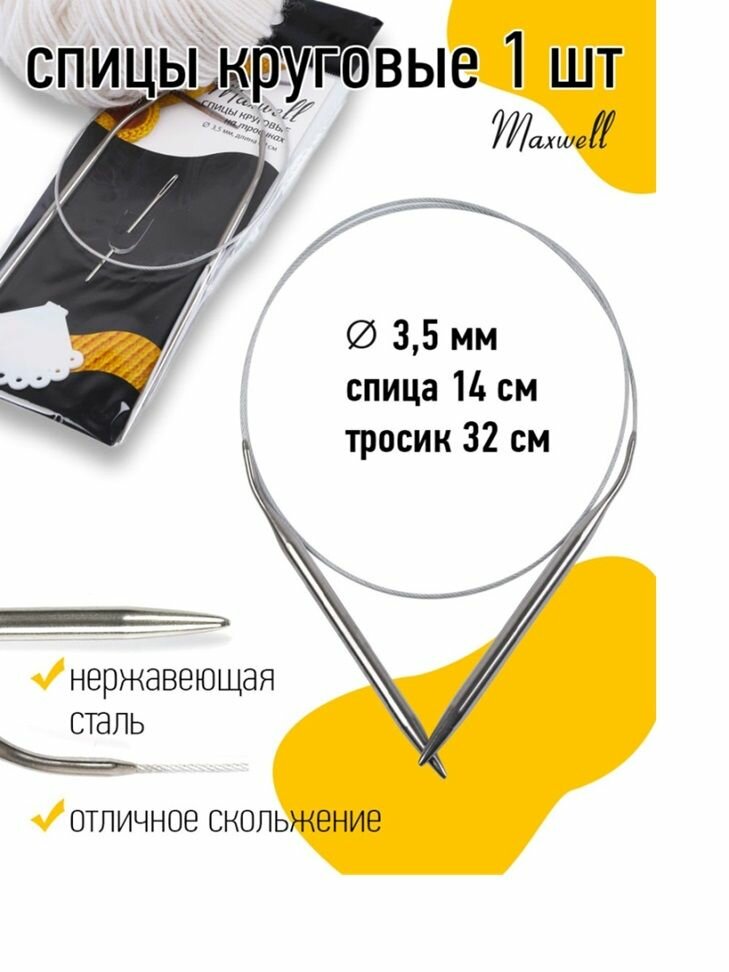 СохранитьСпицы круговые для вязания на тросиках Maxwell Black арт.60-35 3,5 мм /60 см интересное: