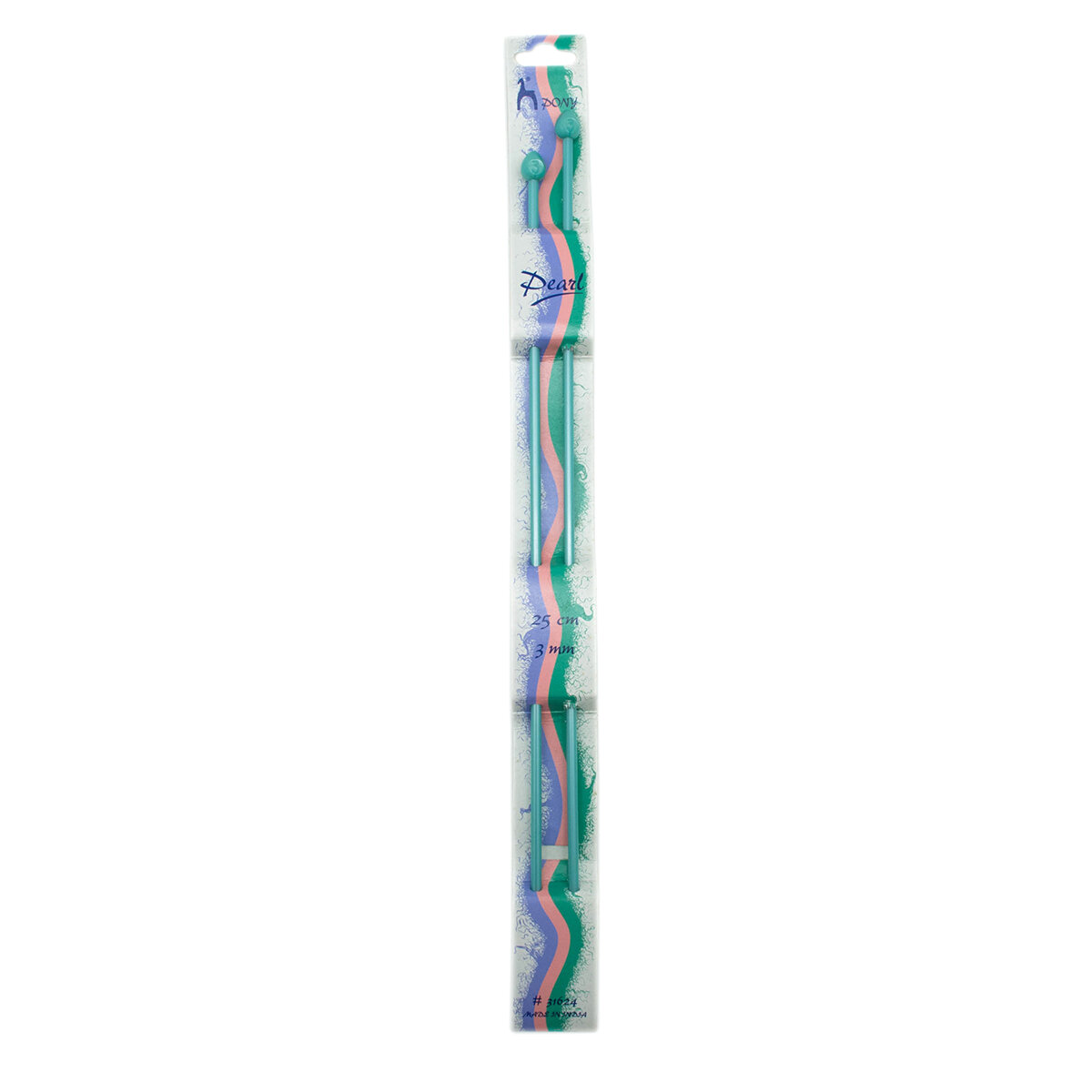 Купить Спицы вязальные прямые PEARL 3 мм*25 см, зеленый, пластик, 2 шт, PONY