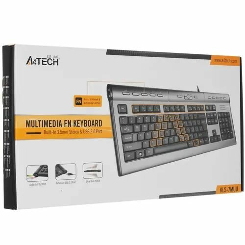 A4-Tech Клавиатура A-4Tech KLS-7MUU, USB, проводная с USB портом (черно-серый) 94395