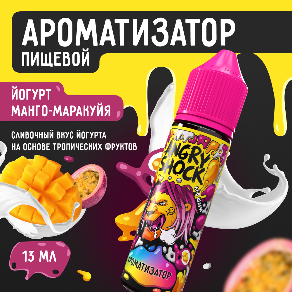 СохранитьАроматизатор пищевой ANGRY SHOCK, Лев Шарм с ароматом йогурта манго-маракуйя, 13 мл. интересное: