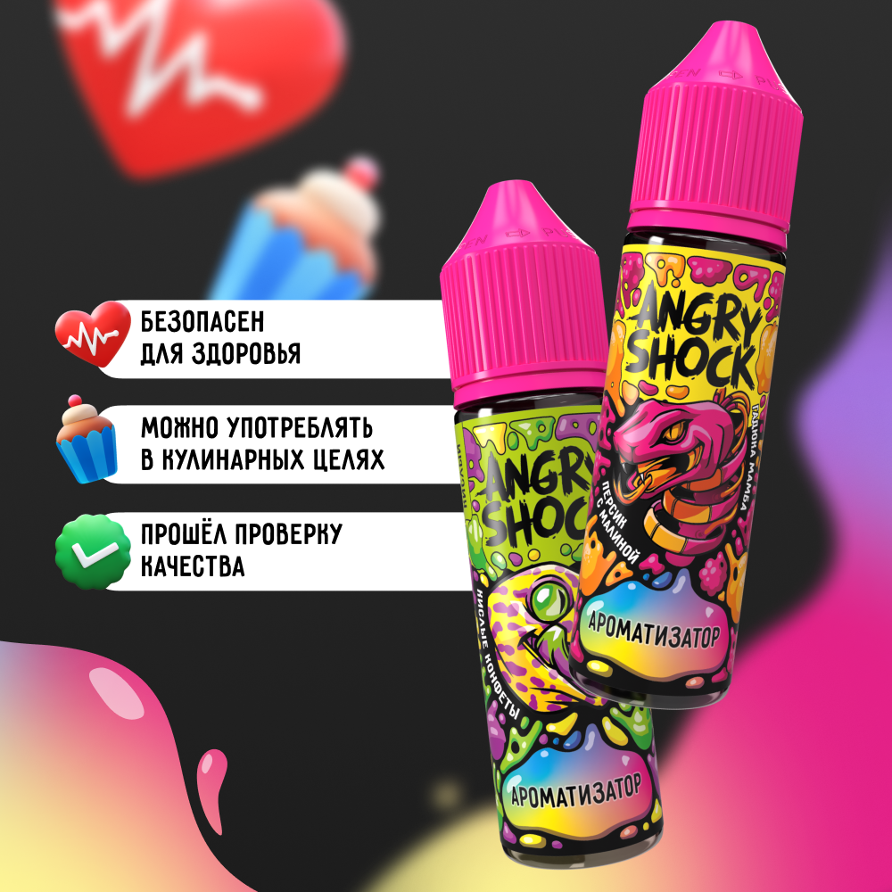 Ароматизатор пищевой ANGRY SHOCK, Гадюка Мамба с ароматом персика с малиной, 13 мл.