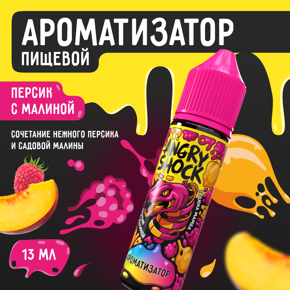 Купить Ароматизатор пищевой ANGRY SHOCK, Гадюка Мамба с ароматом персика с малиной, 13 мл.