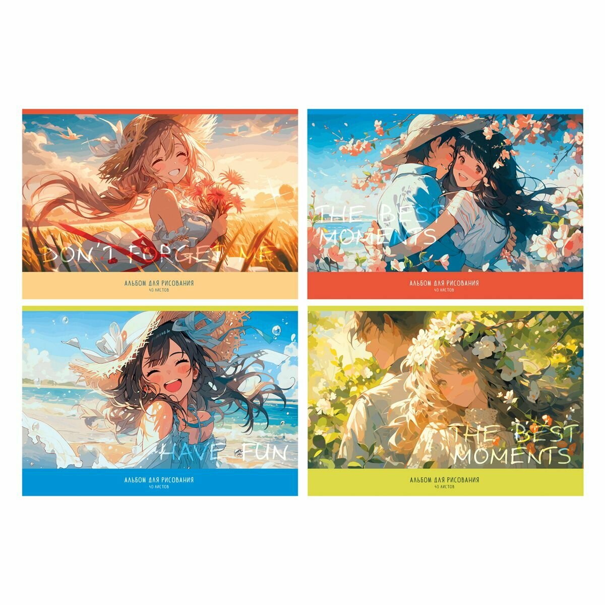 Альбом для рисования 40листов, 4 штуки, А4, на скрепке "Аниме" интересное:
