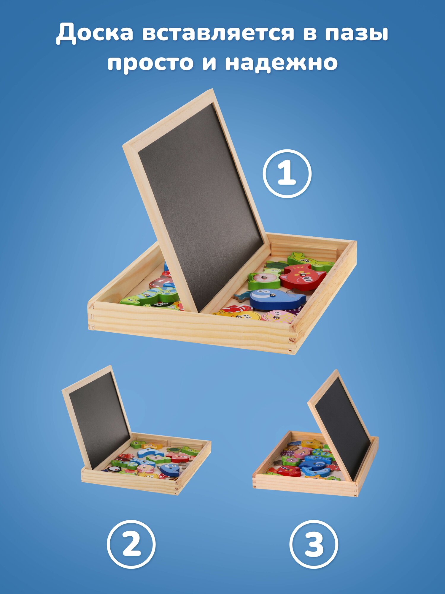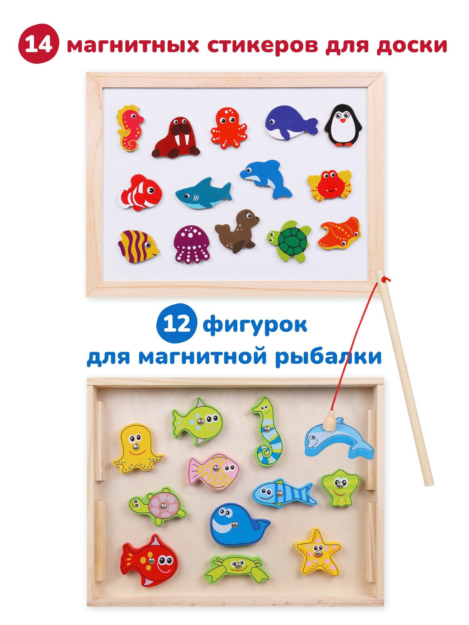 | В комплект входит | доска для рисования, ящик, мелки, фломастер, инструкция, губка, магниты 14 шт, фигурки 12 шт, удочки 2 шт |