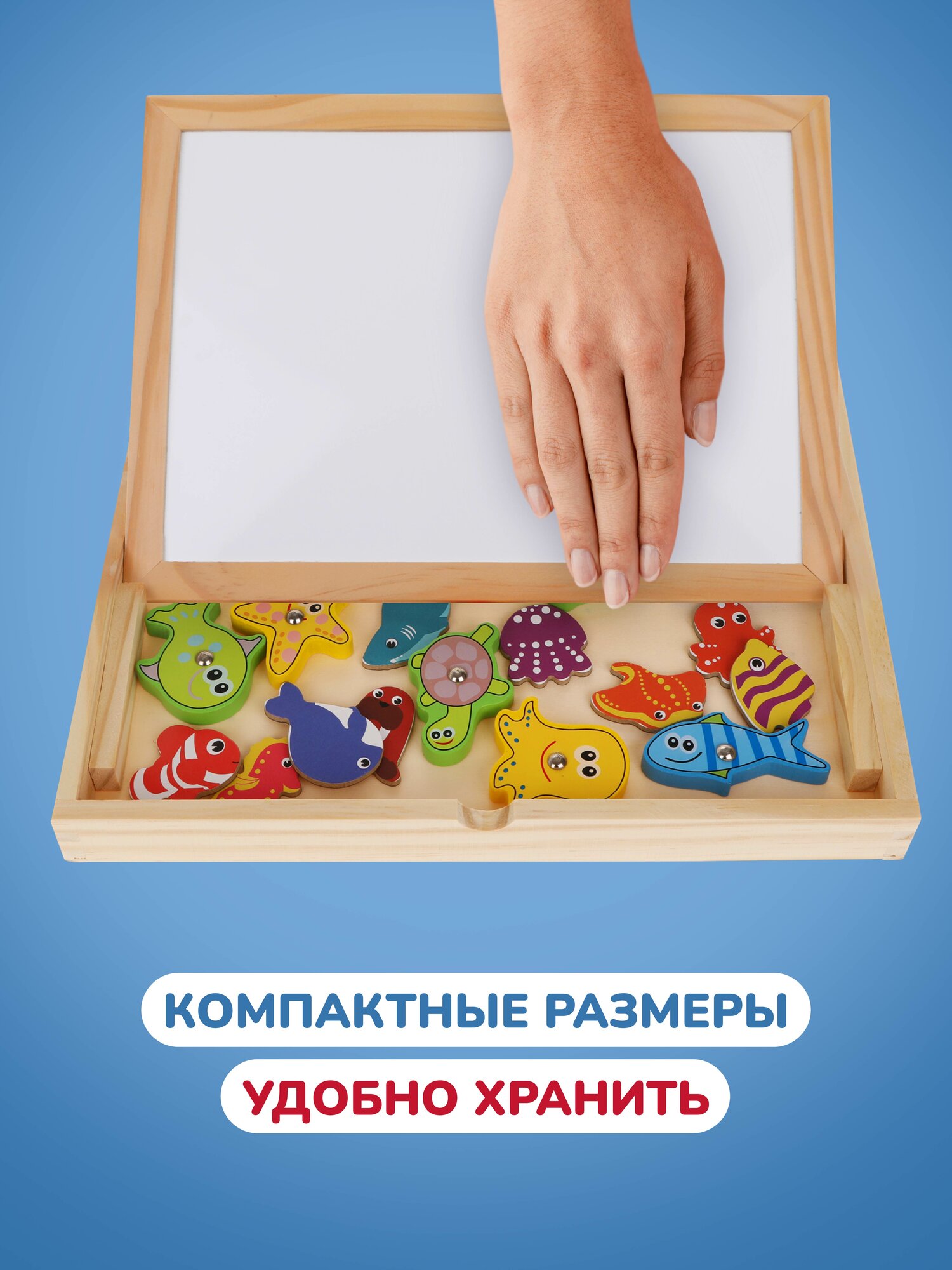 Магнитная двухсторонняя доска для рисования Рыбалка + удочки Mapacha, бизи-чемоданчик, мелки и маркер в комплекте интересное: