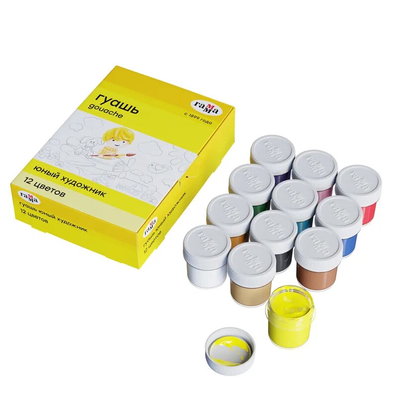 Купить Гуашь Гамма "Юный художник NEW", 12 цветов, 17,5мл, картон. упаковка (2шт)