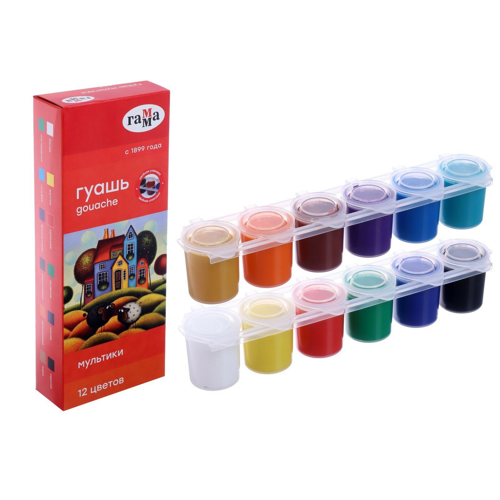 Купить Гуашь гамма Мультики 12 цветов по 15 мл