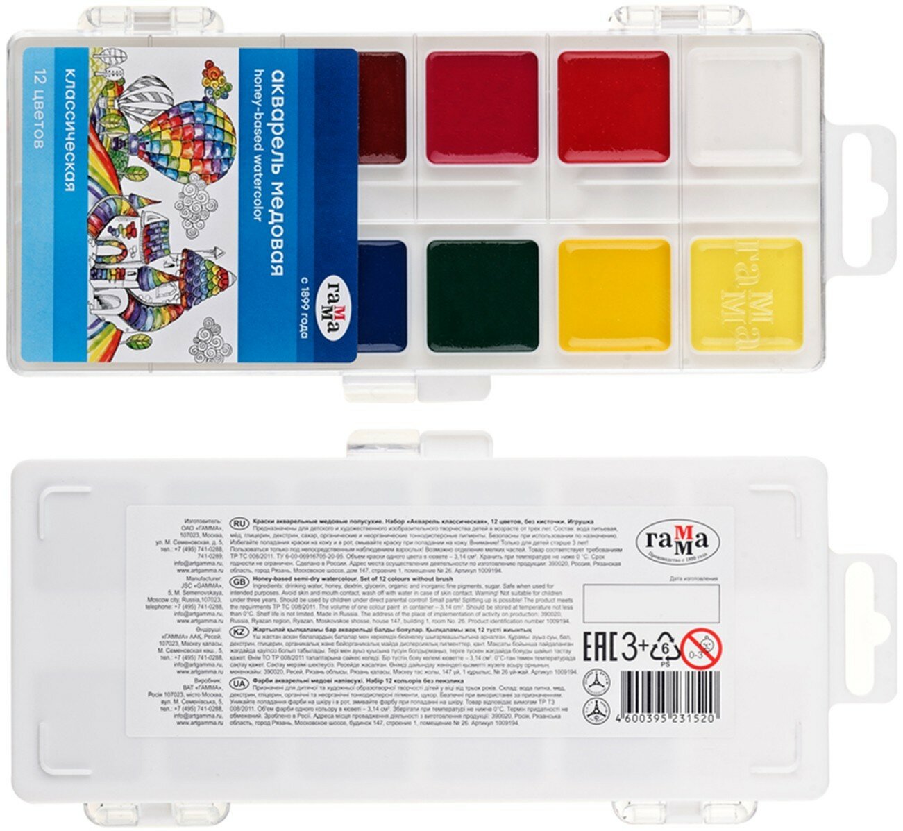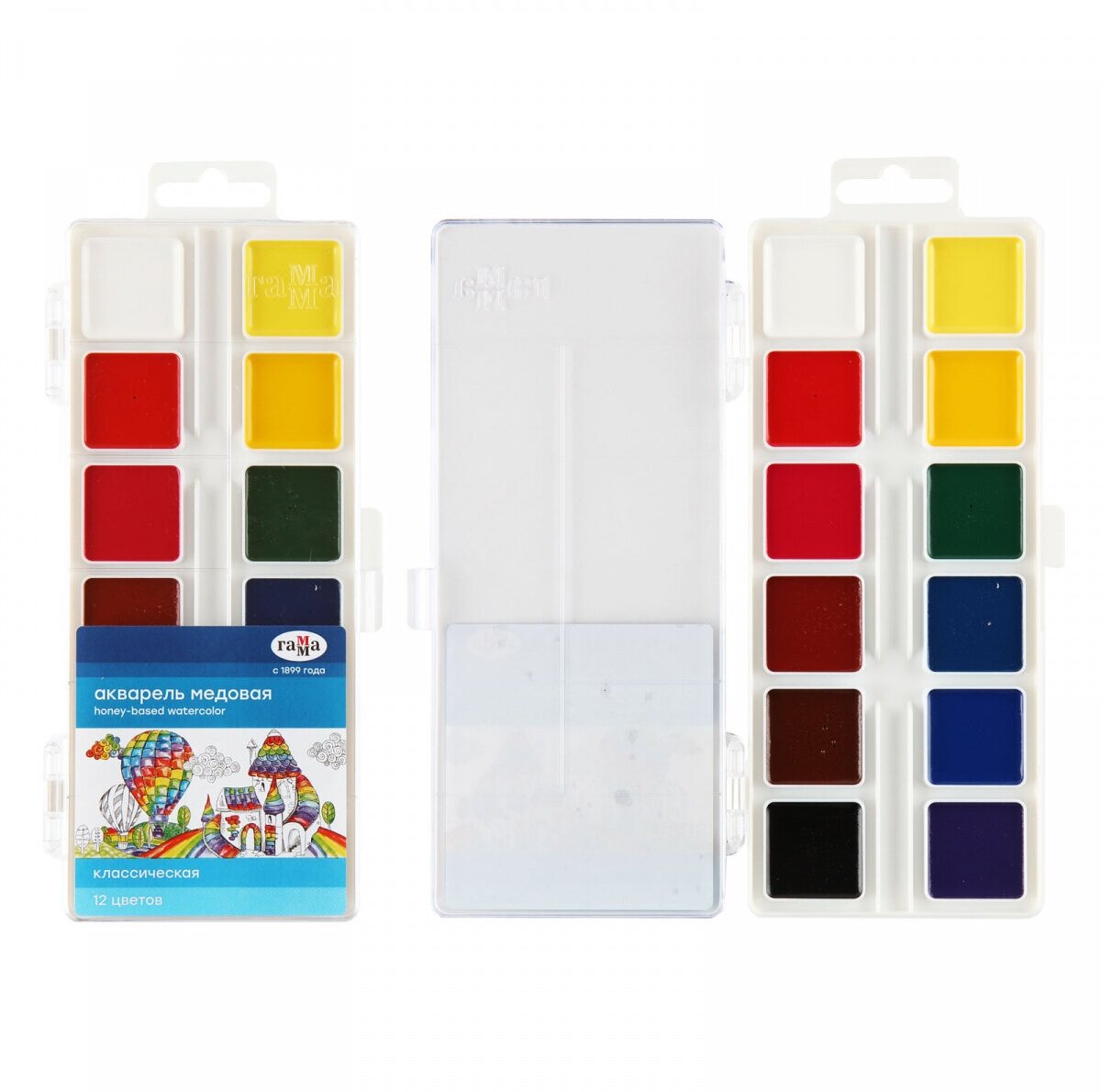 Акварель Гамма «Классическая», медовая, 12 цветов, без кисти, пластик. упак., европодвес NEW