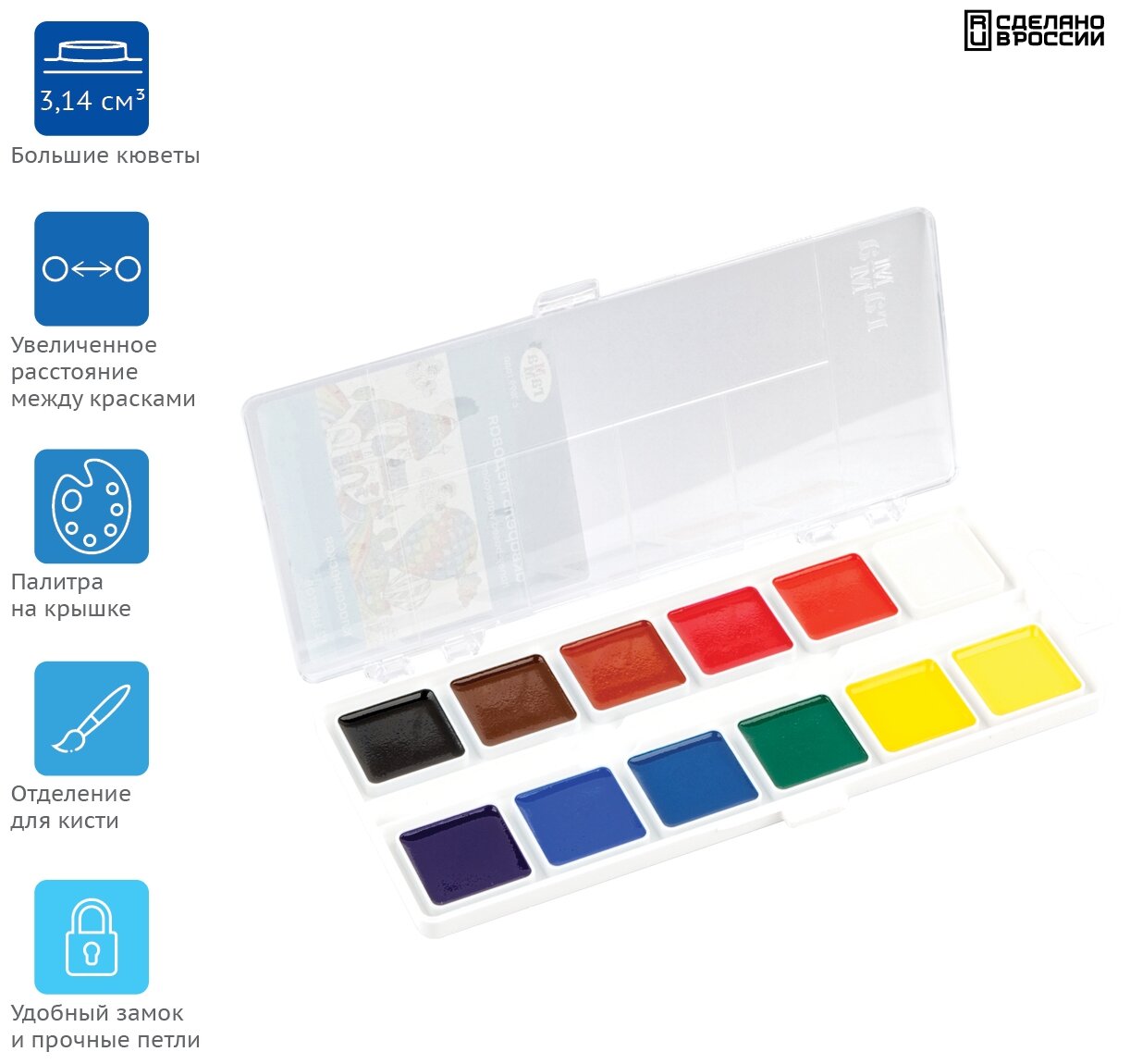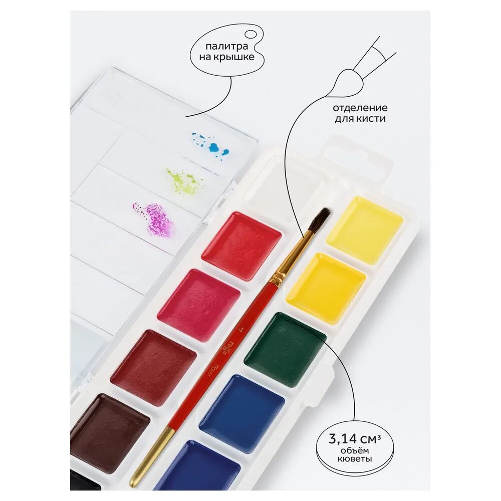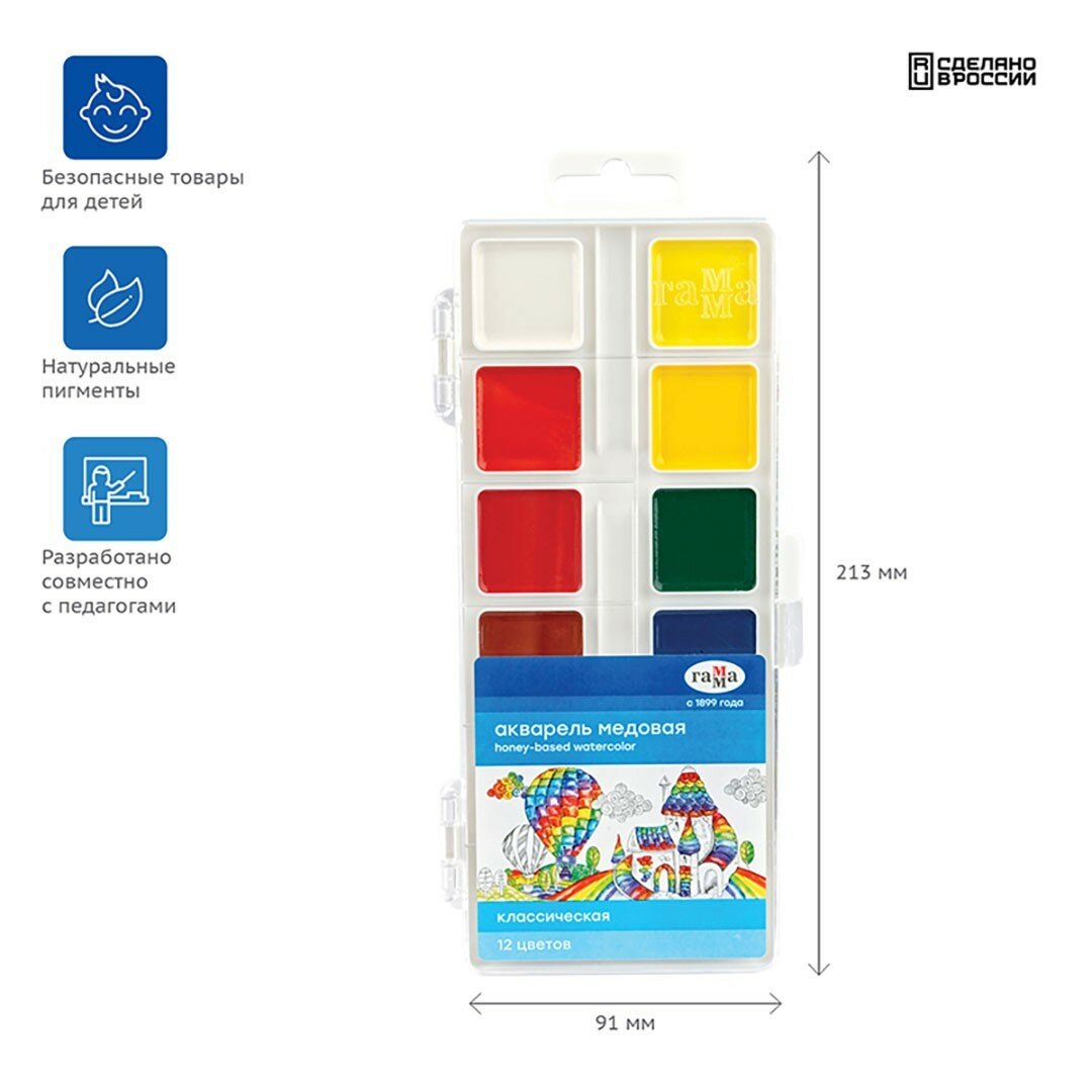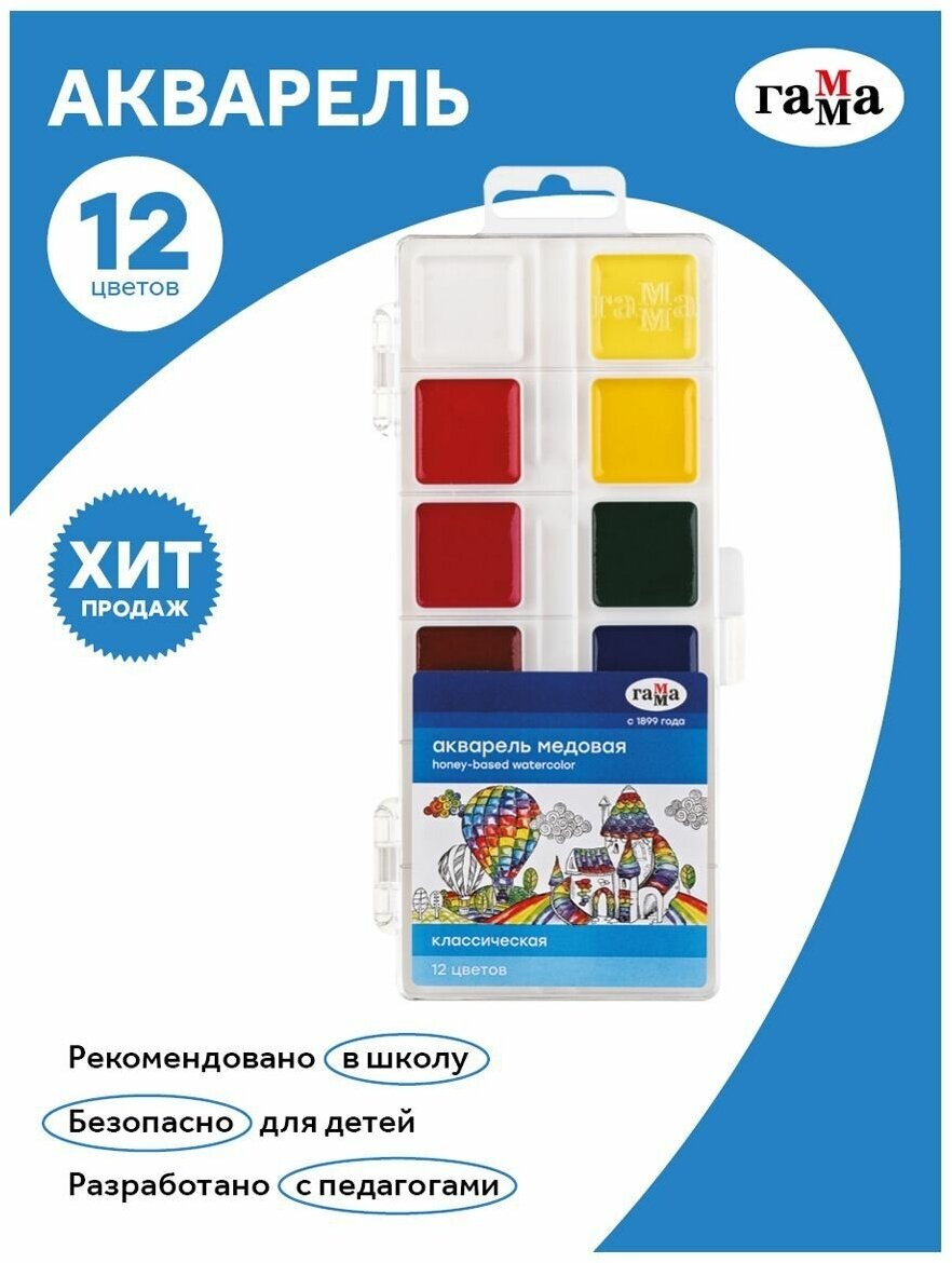 Краски акварельные для школы детские 12 цветов / Акварель медовая для рисования детям, набор красок Гамма "Классическая" / творчество для детей