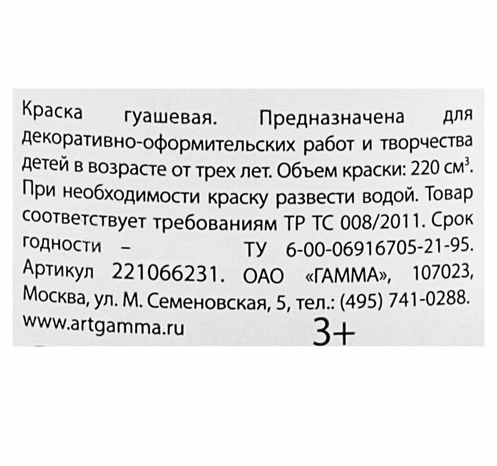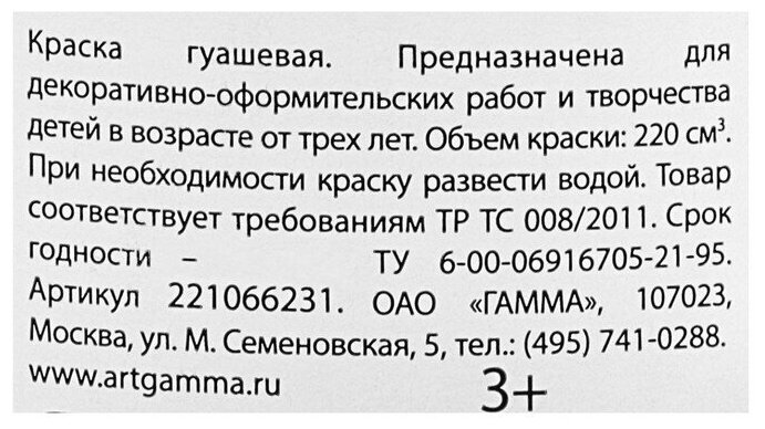Гуашь Классическая 220мл Белила Цинковые 221066222 /гамма/