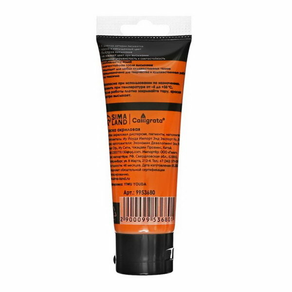 Краска акриловая матовая в тубе 75мл КМ030, Оранжево-желтый, пантон 1655С