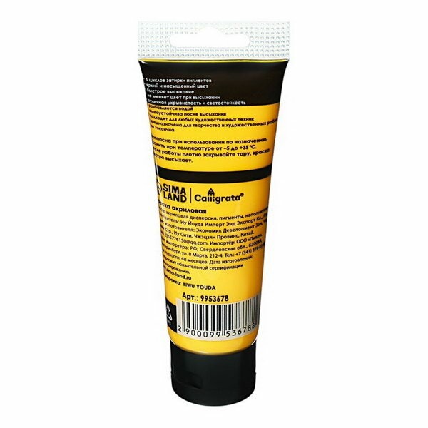 Краска акриловая матовая в тубе 75мл КМ030, Оранжево-желтый, пантон 1655С