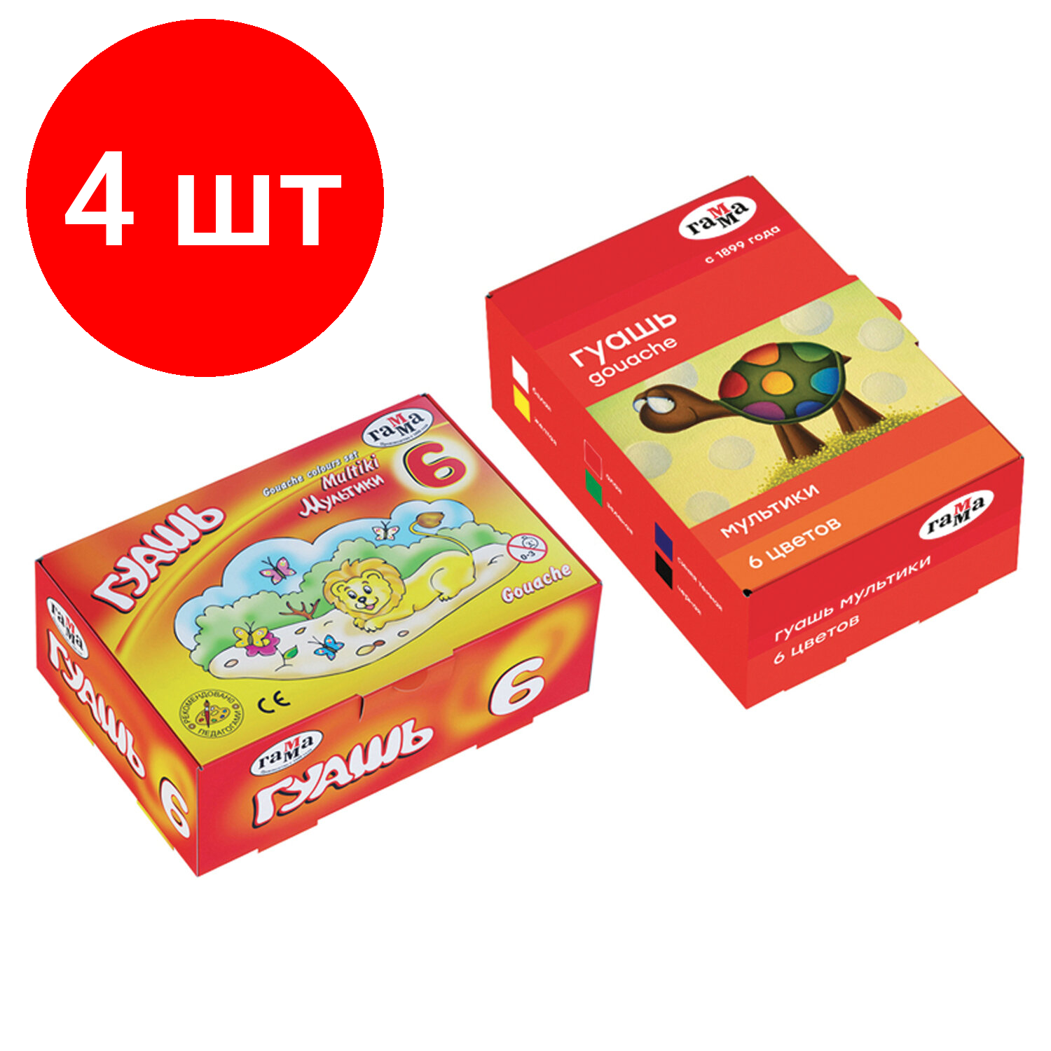 4 шт - Гуашь Гамма "Мультики", 06 цветов, 20мл, картон. упаковка