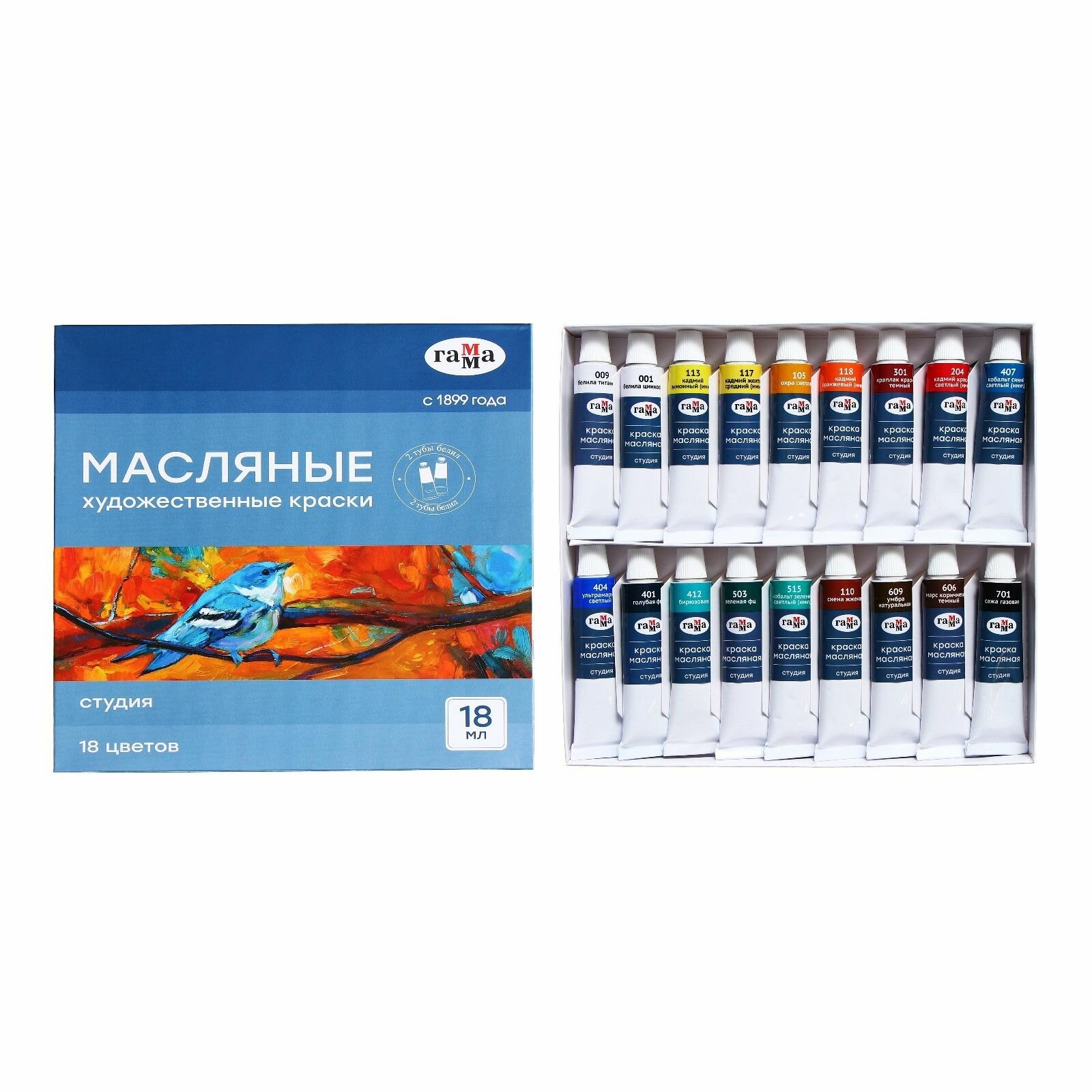 Купить Краски масляные Гамма "Студия" 18 цветов, туба 18мл, картон. упаковка