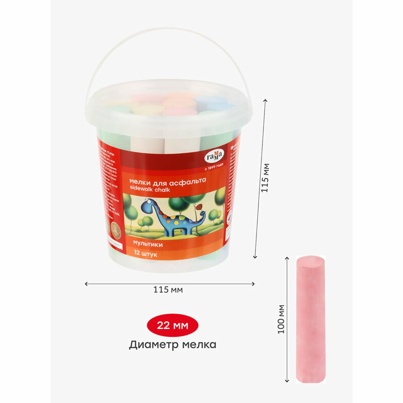Мелки для асфальта Гамма "Мультики" цветные 12шт, круглые, пластиковое ведро NEW интересное: