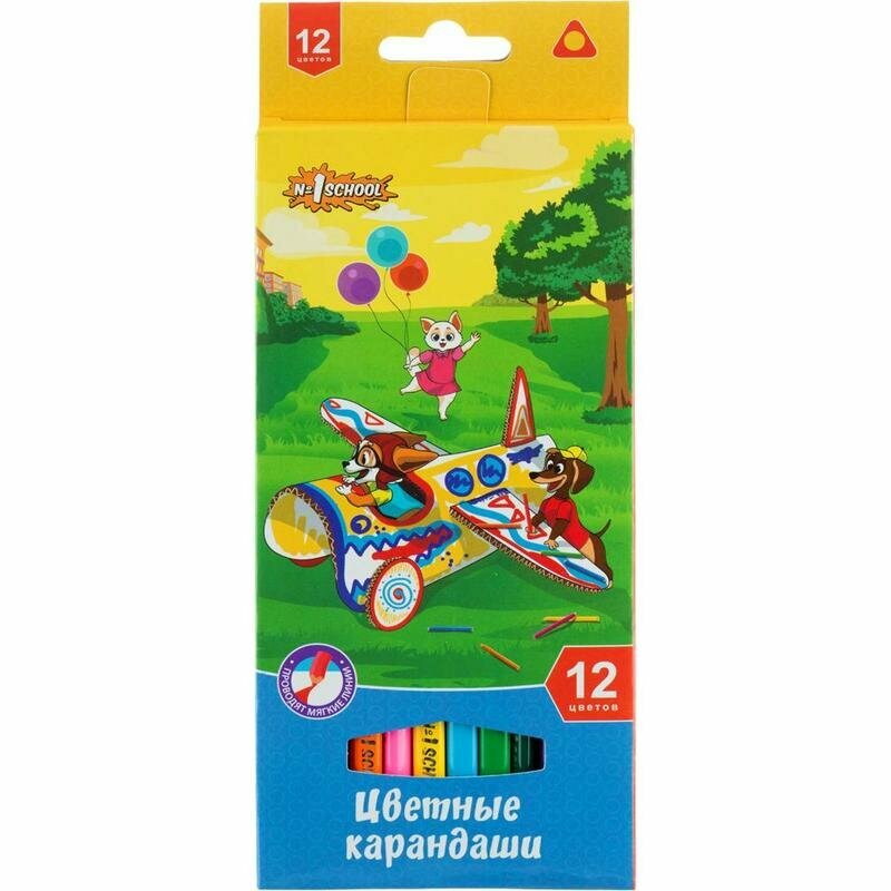 Карандаши цветные №1 School Шустрики, трехгранные, толщина грифеля 2,8 мм, набор 12 цветов